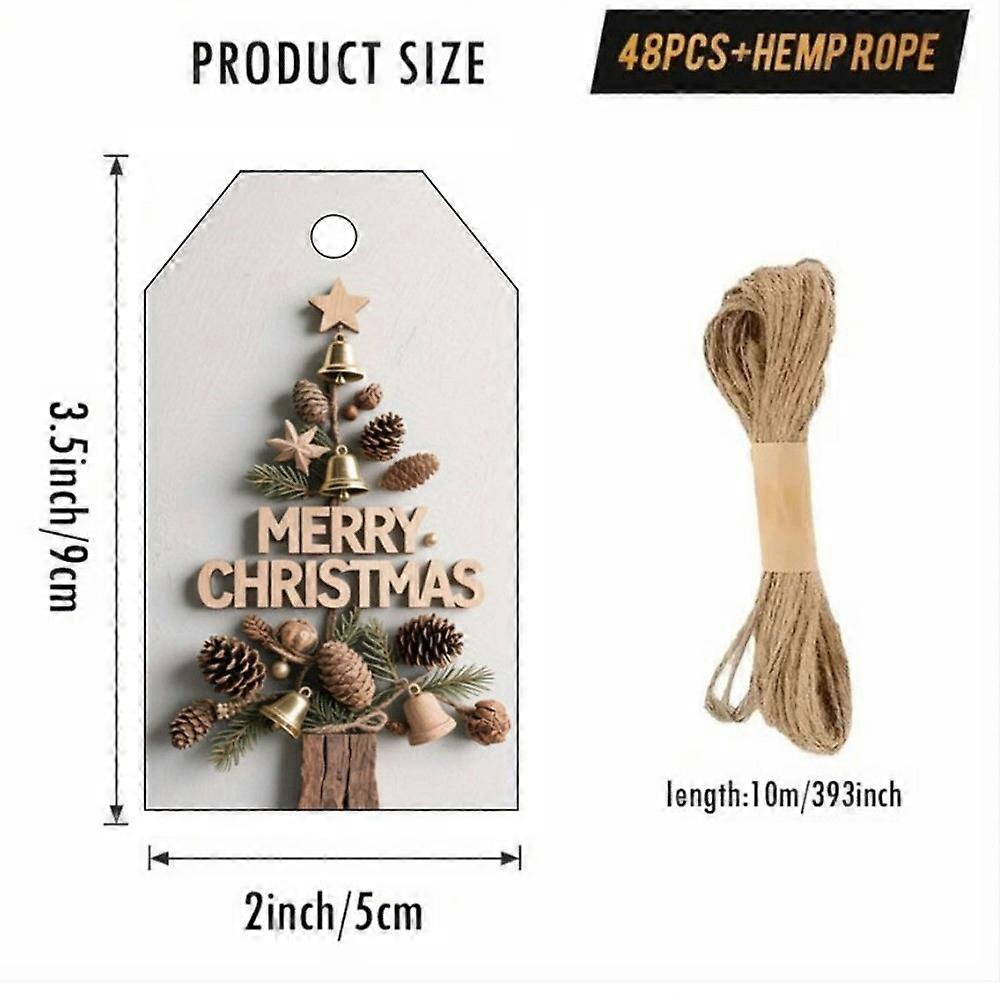 48Pcs Vintage with Rope Christmas Gift Tags Santa Claus Elk Christmas Hanging Label Paper Christmas DIY Cards Party Decoration