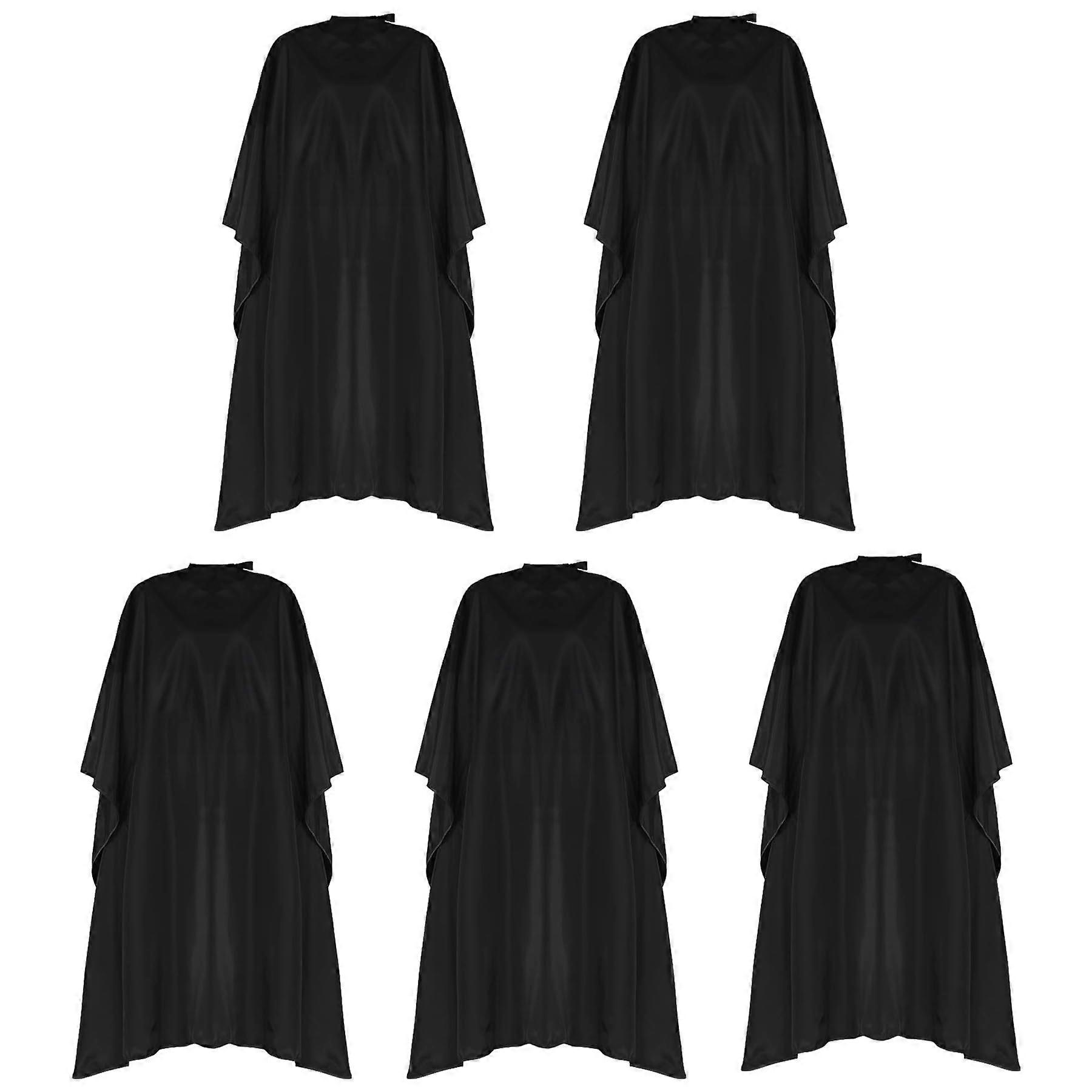 Professional Waterproof Barber Cape with Adjustable Snap Closure, Black Nylon Hair Cutting Cape 5 Pack