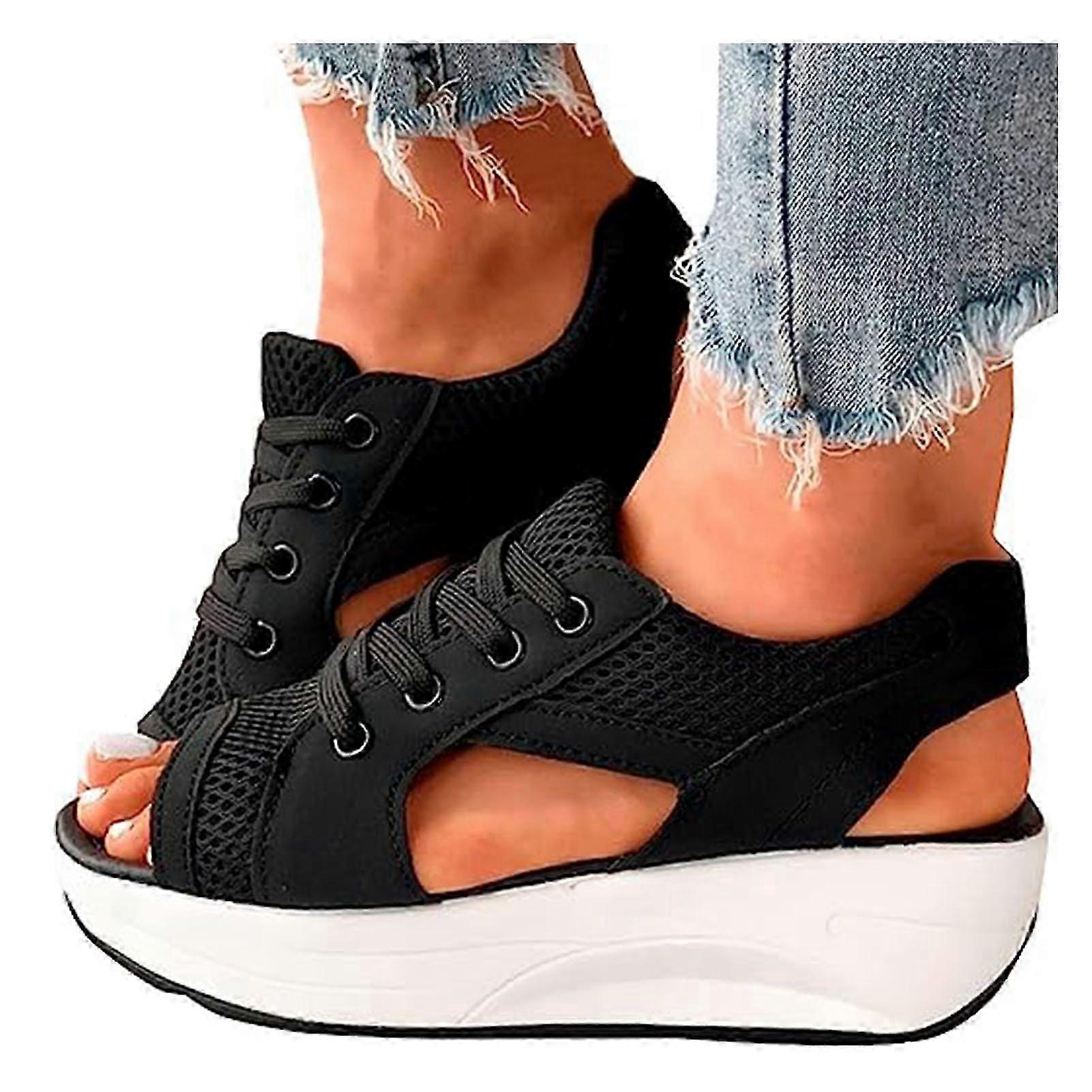 SQLX New Women Lace-Up Muffin Sandals Contrast Paneled Cutout Heeled Sandals Flip Flops for Daily Wear Summer Dressy Party HK