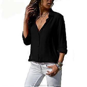 Women's blouseOrigin:CN(Origin)Material:PolyesterClothing Length:RegularDecoration:NONEFabric Type:ChiffonSeason:SummerModel Number:BL132Pattern Type:SolidGender:WOMENStyle:CasualAge:Ages 18-35 Years OldCollar:V-NeckSleeve Style:RegularSleeve Length(cm):Full