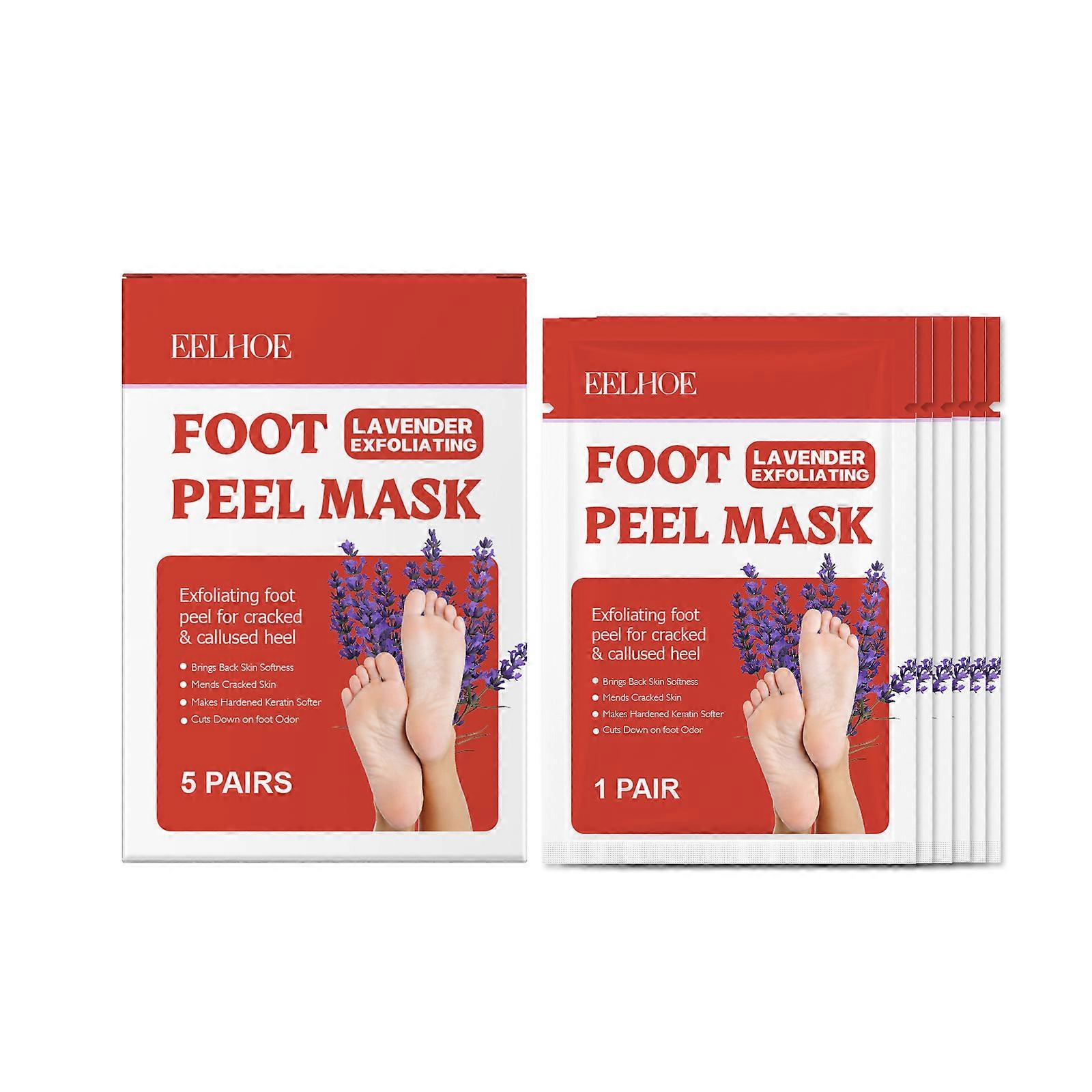 [DETAIL]<br>EELHOE Exfoliating Foot Mask Anti Cracked Remove Dead Skin Calluses Whitening Heels Moisturizing Foot Peeling Pedicure Foot Skin Care<br>Specifications:<br>●Condition: 100% brand new and high quality<br>●Item Type: Foot Mask<br>●Content: 5pairs<br>●Shelf life: 3 years<br>●Storage method: Store in a cool dry place<br>Features:<br>1. Exfoliate Dead Skin: Our foot mask effectively removes dead skin, revealing softer and smoother feet with every use.<br>2. Brighten Foot Complexion: Experience brighter and more radiant foot skin as this foot mask enhances your overall foot appearance.<br>3. Crack Prevention: Say goodbye to cracked heels! This foot treatment is specially formulated to prevent cracking and promote healthy skin.<br>4. Spa-Like Experience: Enjoy a luxurious foot spa treatment at home, transforming your foot care routine into a soothing self-care ritual.<br>5. Comprehensive Foot Care: Designed for complete foot skin care, our foot mask nourishes, hydrates, and revitalizes your feet for lasting comfort.<br>How to use:<br>1. Cleanse your feet and dry them.<br>2. Remove the foot mask and apply it to your feet.<br>3. Leave it on for 20-30 minutes, then remove the mask and rinse your<br>Notice:<br>*Actual color may be slightly different from the image due to different monitor and light effect<br>*Please allow 1-3cm deviation due to manual measurement<br><br>[ATTRIBUTES]<br>- Certification: CPNP<br>- High-concerned chemical: None<br>- Number of Pieces: One Unit<br>- Certification: CPNP<br>- High-concerned chemical: None<br>- Number of Pieces: One Unit<br>- Country/Region of Manufacture: China Mainland<br>- Ingredient: Natural Plants<br>- NET WT: 5 pairs<br>- Type: Foot Mask<br>- Brand Name: eelhoe<br>- Origin: Mainland China<br>- Use: Foot<br>- Package Quantity: Five Pieces