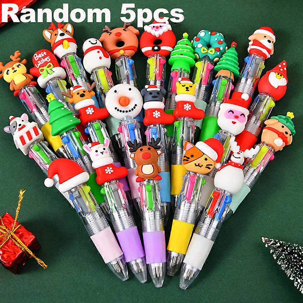 Festive Christmas Ballpoint Pens-Assorted Cartoon Designs,Retractable 4Color Ink,Holiday Writing Xmas Pen for Journal and Gifts