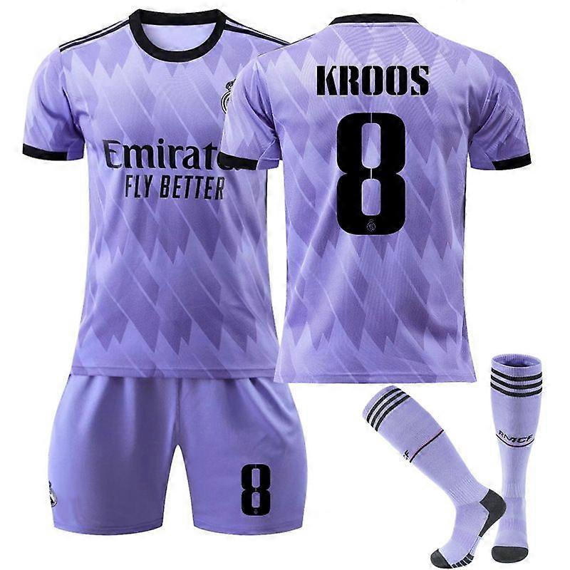 Real Madrid Away Soccer Jersey No. 08, Kids and Youth Sizes, Includes Soccer Socks
