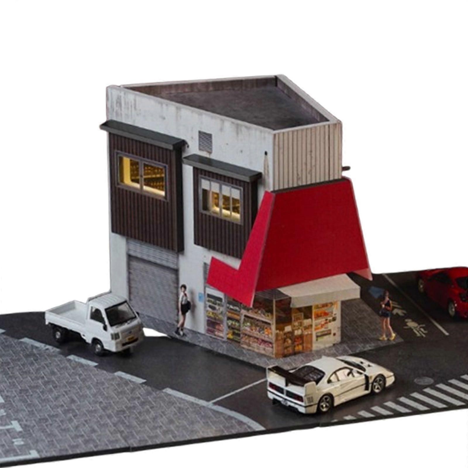 1/64 Diorama Corner Store Model with LED Lighting City Building Scene