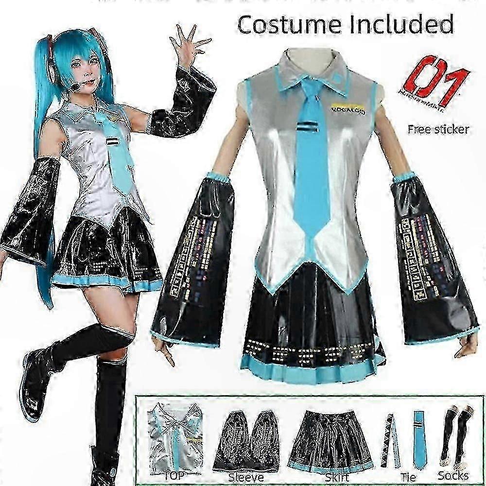 Miku Cosplay Costume Set With Silver Leather Sailor Dress Outfit WSLIHV