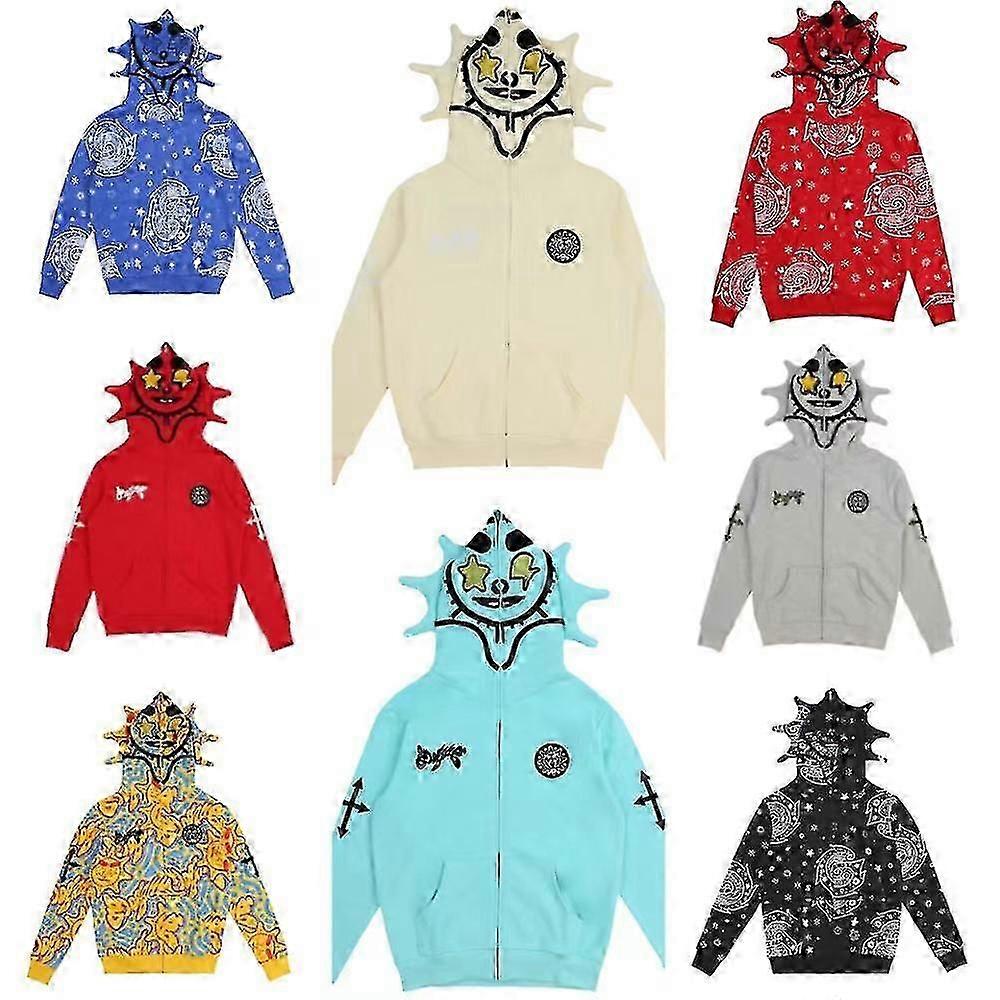 Gothic Punk Sweatshirt Streetwear Women Print Long Sleeve Hoodies Casual Zipper Jacket Hooded Tops Y2k Skull Unisex Cardigan WSLIHV