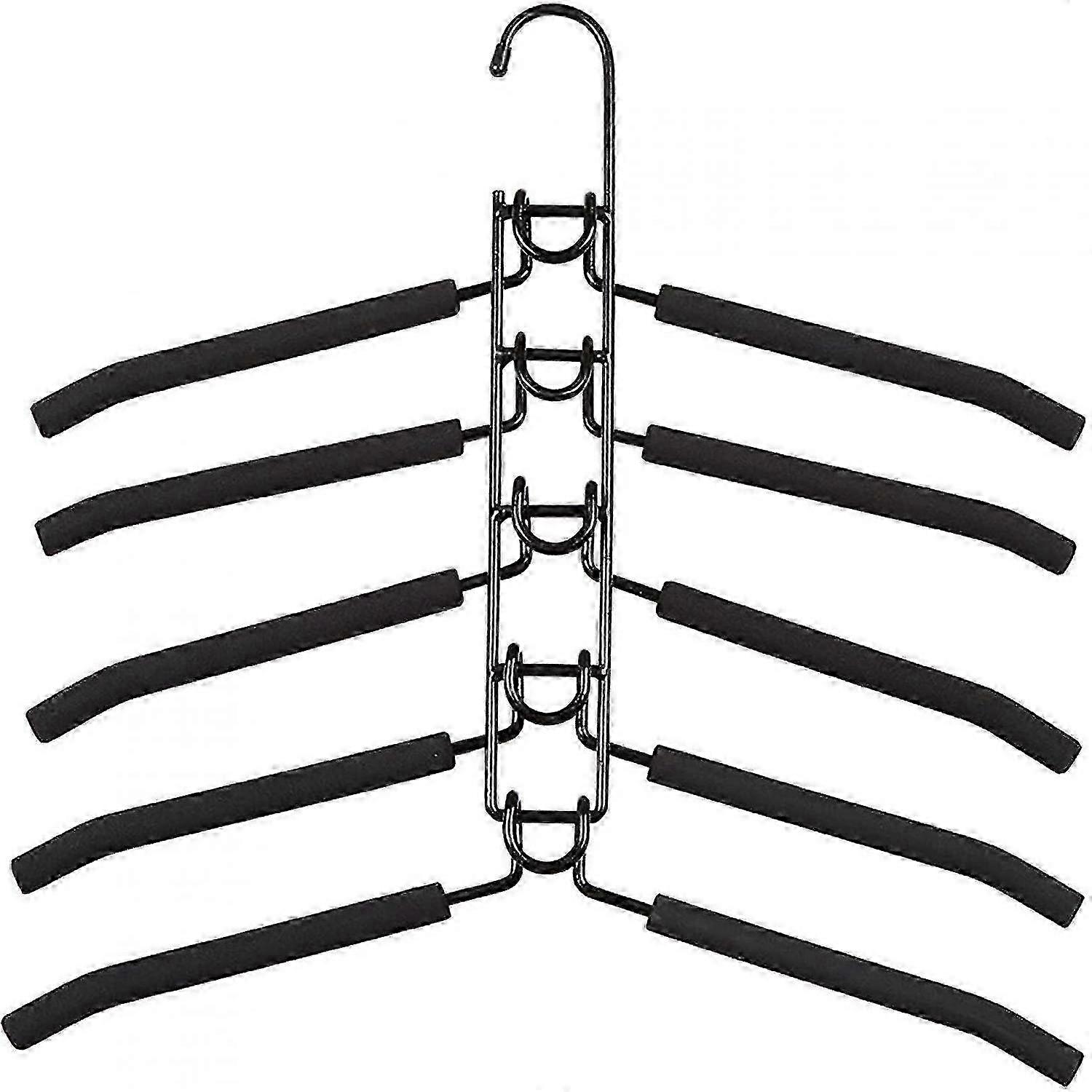 <p>Sturdy \u0026 Durable DesignThe heavy duty hangers is made of high-quality iron material, it's not easy to rus t, durable in use. And the clothes hangers has strong load-bearing capacity. The quality is much better than plasti c hangers.</p> <p>5 IN 1 DESIGNWith 5 layers design, one clothes hanger is equal to 5 normal one. Both sides can be used to hang clothes to save space. Never worry about having no enough hangers to hold your clothes.</p> <p>Non-Slip DesignThe clothes hangers non-slip velvet has thickened EVA Sponge design, preven t clothes from scratching. At the same time, it can preven t clothes from slipping and dirty clothes.</p> <p>Organize Your ClosetThis hanger can help you organize your pants according to different types, so that you can find the clothes you want quickly and easily. And you can put the pants together which you don't want to wear.Specification:</p> <p>Material: Iron+ EVA Sponge</p> <p>Size: about 40 x 38 cm</p> <p>Color: Black</p> <p>Package Included:1 x Clothes Hangers</p>