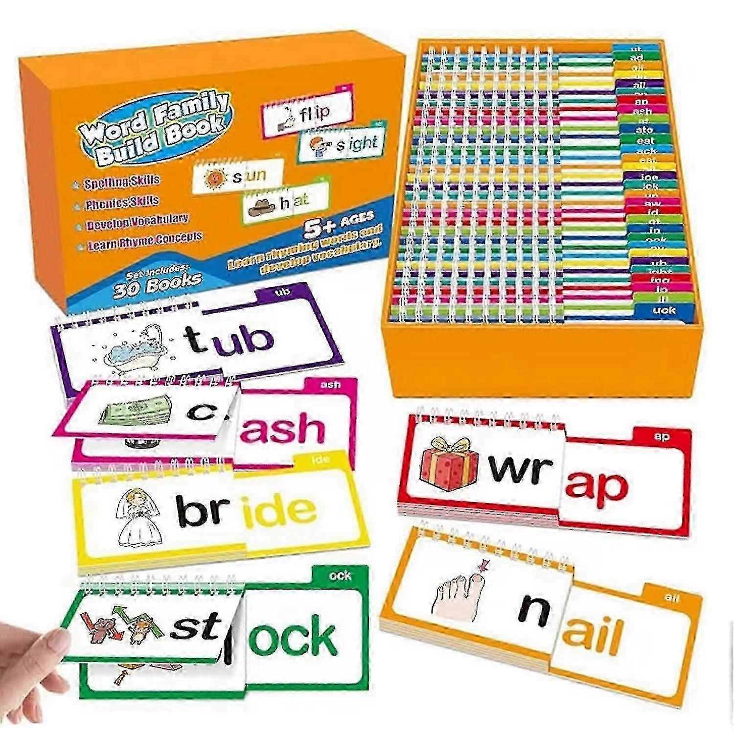 30 Rhyming Flip Books, Word Family Spiral Flip Books, Interactive Phonics Learning Tools for Children