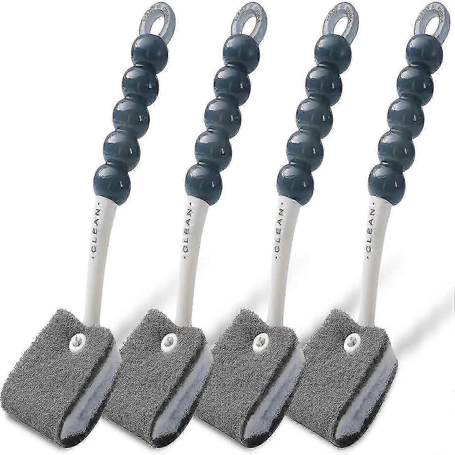 4-piece cleaning brush set: kitchen cleaning brush, dish brush, and bathroom brush (grey).