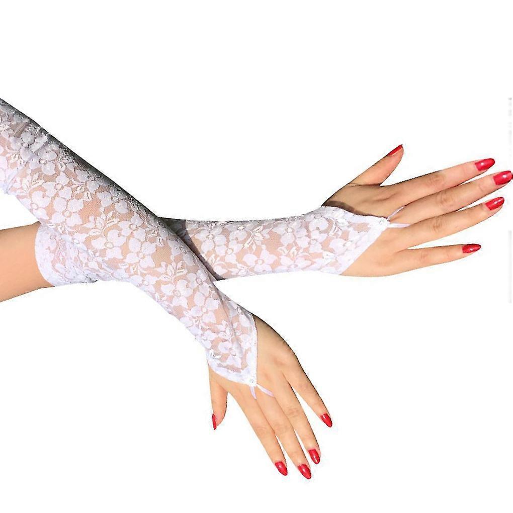 Women Lace Floral Mesh Gloves Ladies Costume Party Fingerless Long Mittens