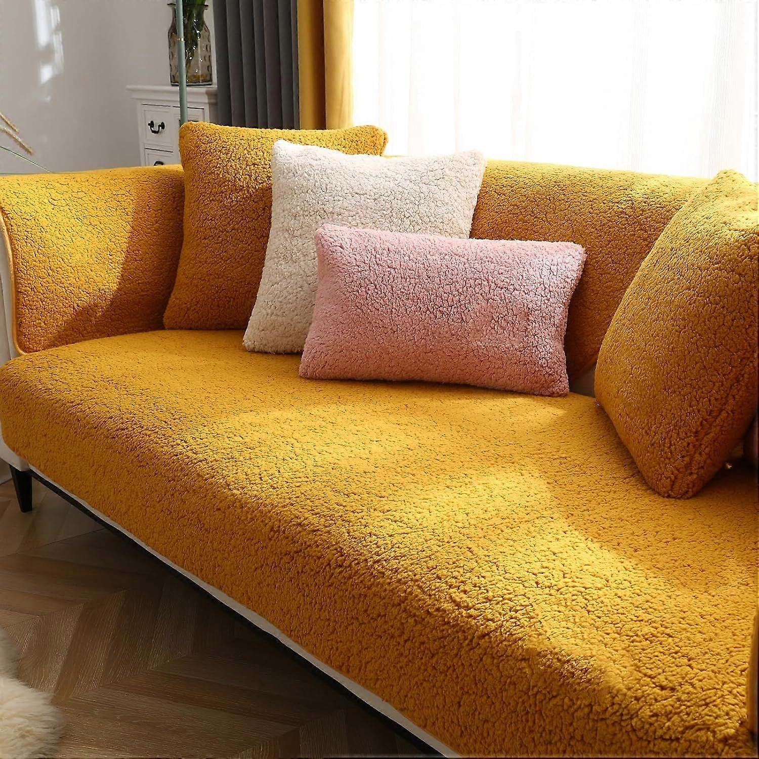 Thickened L-shaped sofa cover, suitable for 1/2/3/4-seat sofas, protective sofa cover, universal non-slip faux fur sofa cover, suitable for living roo