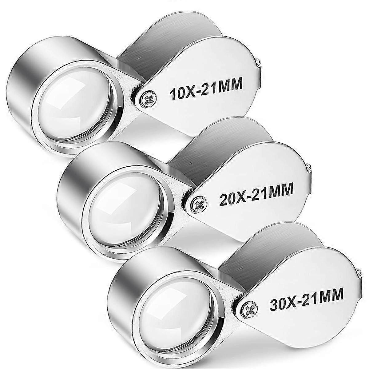 3 Pieces Jewelry Loupe Set with 10X 20X 30X Magnification for Gemstone Inspection