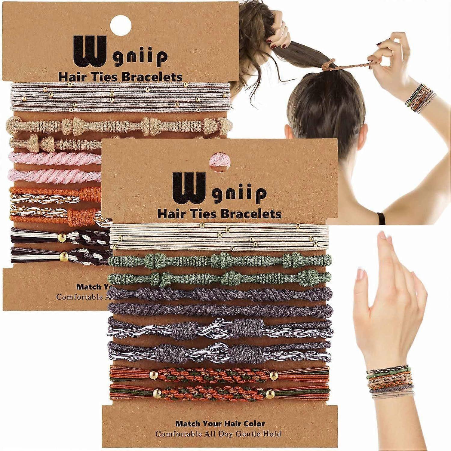 20 Boho Hair Ties in 5 Styles, 10 Colors - Cute Bracelets for Thin and Thick