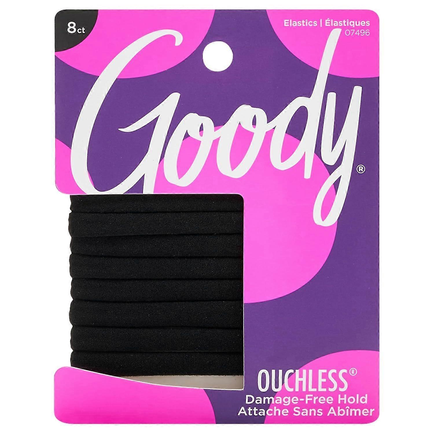 Ouchless Seamless Hair Elastics, 8 Ct, Black, -Free Gentle Hold Elastic Ties, No