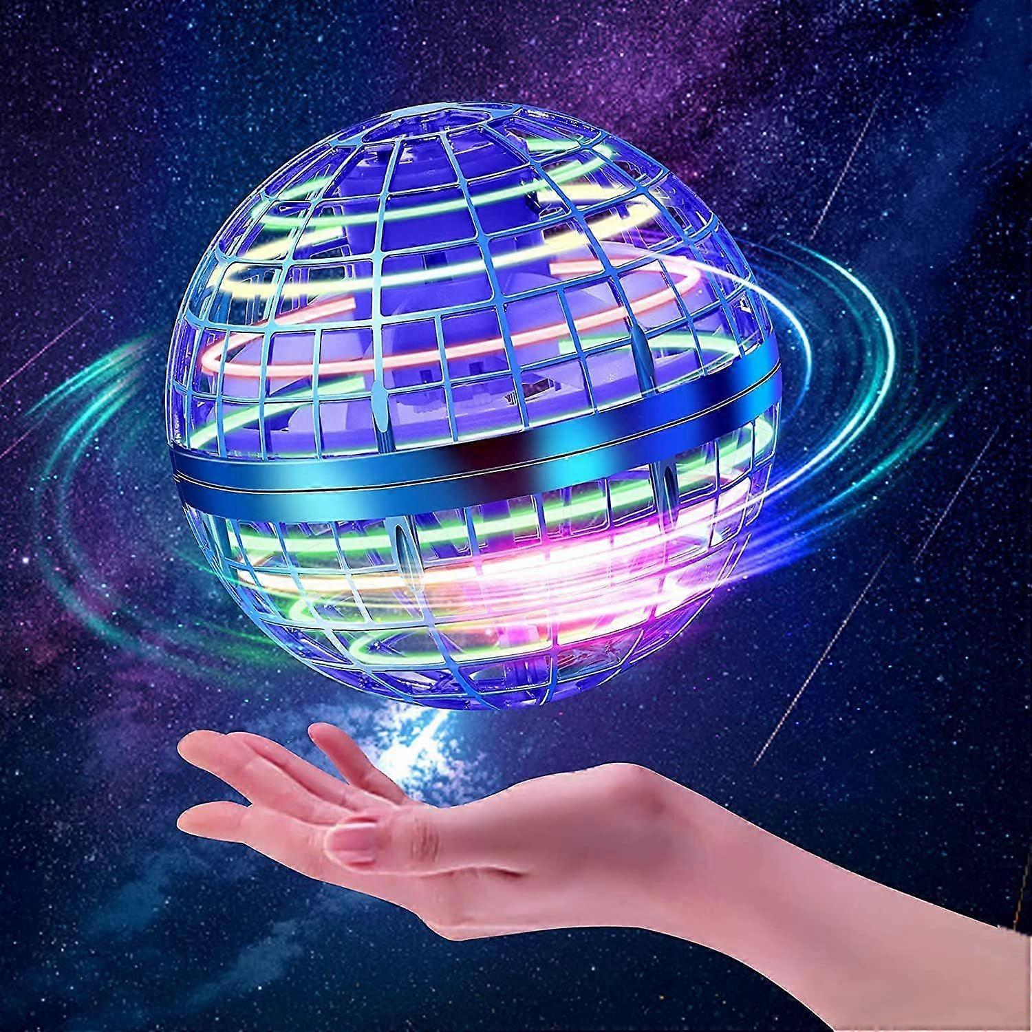 2025 Upgrade High-Tech Hand Controlled Flying Hover Galaxy Ball Toy - We updated this new flying hover ball! The upgrade flying orb ball with RGB light reimagined globe shape and more powerful motor, flying spinner soaring the air at your command, then back to your hand like a boomerang.,which can realize a variety of flight modes. This cool stuff not only brings fun to play but also helps to improve children's hands-on ability, operating skills, intelligence, and creativity. Safe & Durable - Safety tested for use with children (Over 6 years) , UFO drone is a flying toy.The spherical design and protective casing mean it’s completely safe to grab with your hands. The enclosed propellers cause no worry that children will be hurt by their blades.Made of high-grade PP material is surprisingly soft and light, with good drop resistance.When it hits an obstacle, it will slow down and stops naturally. USB Rechargeable Design & Portable - Simply connect it to the USB connector for 25 minutes to fully charge. (Flying time: supports 30 minutes for discontinuous operation, or 8-10 minutes for continuous operation). We supplied USB charging cable can be connected to a power bank, notebook, phone adapter, car charger, etc.Perfect to use it at home, school, party or office, what a joyful entertainment time. Have Fun Anytime and Anywhere - It is designed to work indoors as well as outdoors with a smooth flight pattern and boomerang effect.Perfect for a back & forth game of catch or team tricks with friends.You can control the flying ball to float, glide and climb in the air, or throw it out and fly back like a boomerang, just like you have magic. Control the angle of the flying toys to change the flight path, unlock and explore endless possibilities, let the magic happen. Cool Stuff Gadgets Ideal Gift Choice - This flying orb boomerang ball will become the most eye-catching toy, which can bring endless fun in a series of activities such as birthdays, parties, outdoor garden yard etc. It is the cool gifts for kids on Easter, Christmas, Halloween, Thanksgiving Day, New Year, etc. Also the best birthday gifts for 6 7 8 9 10+ year old boys girls. We have detailed instructional videos and detailed instructions, please read them carefully. If you have any questions, please do not hesitate to .
