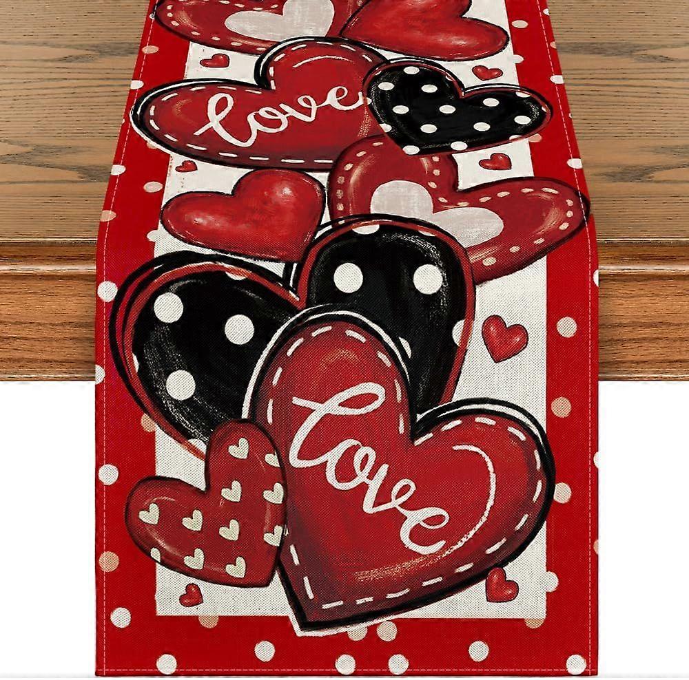 Red Polka Dot Heart Love Valentine's Table Runner, Anniversary Wedding Kitchen