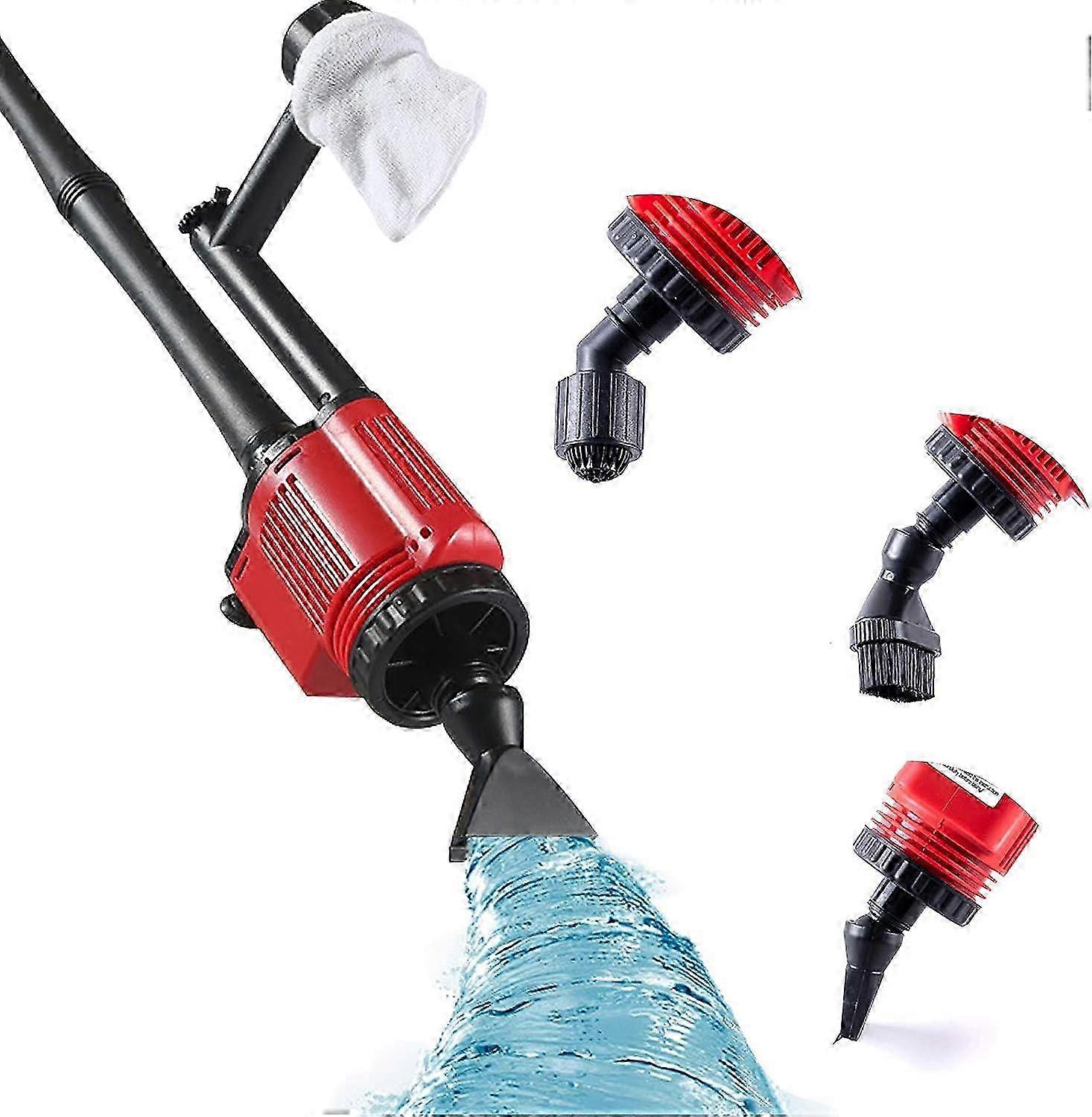 Feactrue - Sand washing head: Built-in filter to block the gravel from being sucked out. - Cleaning brush: Effectively cleans the mud on the aquarium wall . - Rotatable duckbill head: 360swivel design for easy cleaning of fish manure and trash at the comers of the aquarum. - Sand washer: Suitable for cleaning vanous bottoms of fish tanks ,with a wide range of cleaning. Upgraded 6 In 1 MultifunctionEasily filter impurities and remove bottom trash. The upgraded aquarium gravel vacuum cleaner have 6 in 1 functions with water changer and sand washer and debris cleaning and water filter and water shower and water flow. Suit for freshwater and seawater and various depth fish tank. Should connect with different connector when working for different function. It's your aquarium good helper. Strong PowerThe 220V/28W powerful water pump motor can provide the maximum flow of 1800L/H. It only takes 0.45 hour to pump out a 180-gallon tank. At the same time, the pump flow is adjustable. Freely adjust the different lengths:18.5"-45.27"(47-115cm)suitable for both shallow and deep aquarium.
