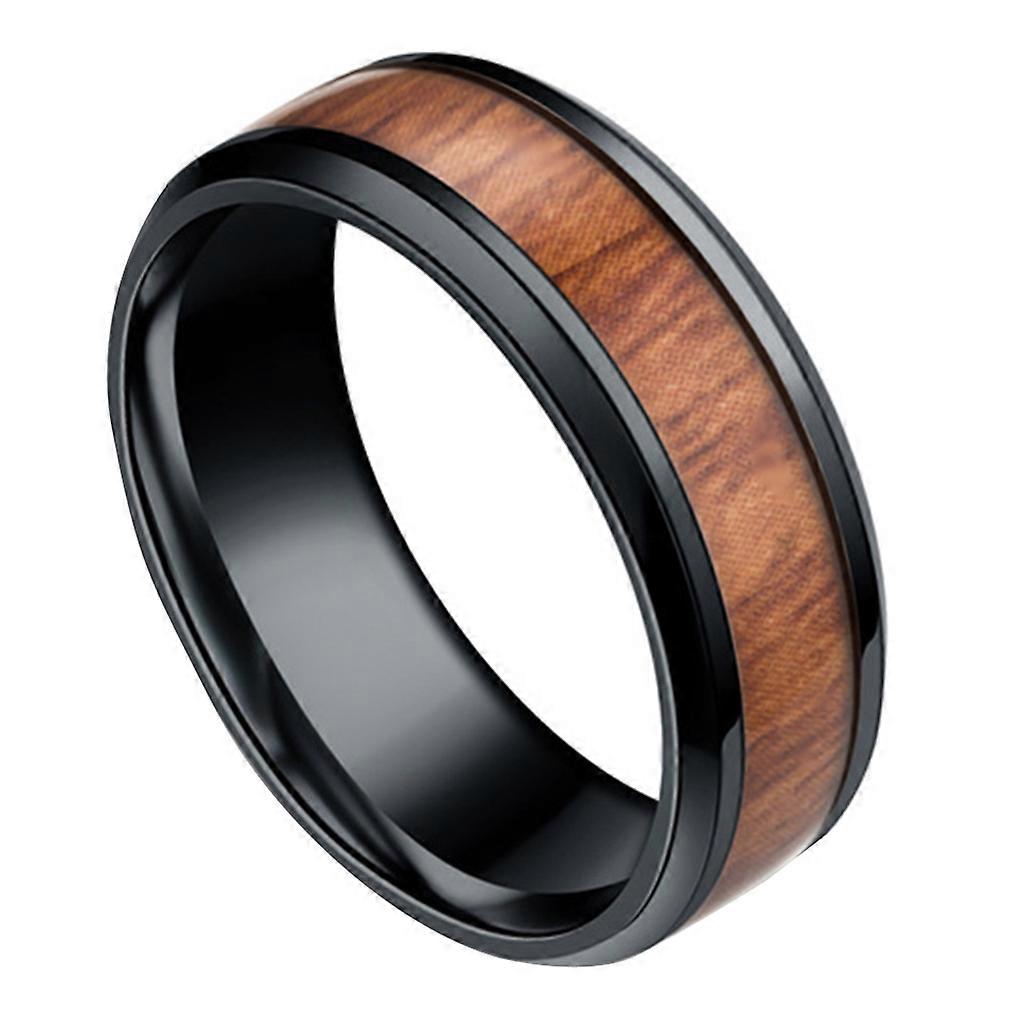 Men 8mm Retro Titamium and Wood Inlay Stainless Wedding Band Hand Accessories