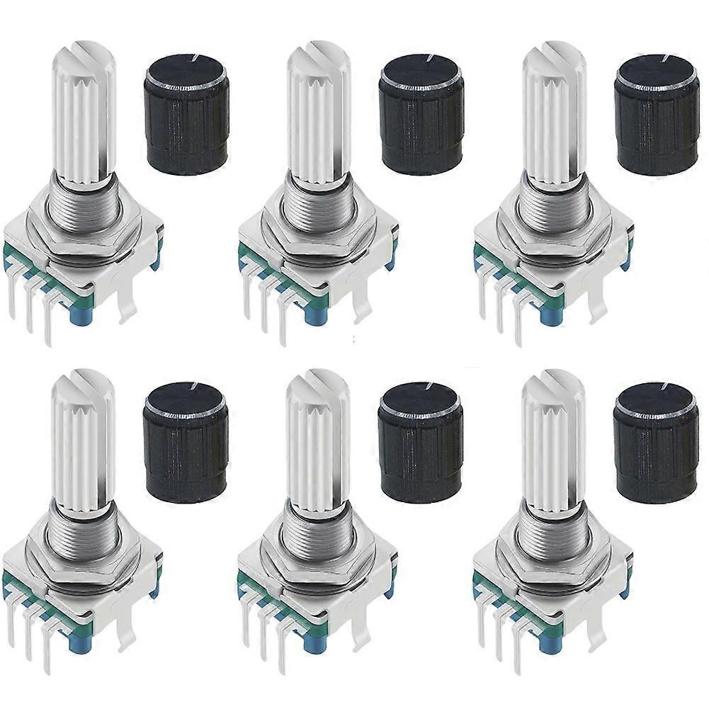 6pcs EC11 Rotary Encoder with Push Button 360 5 Pins and Knob Cap for Arduino, Raspberry Pi, ESP32