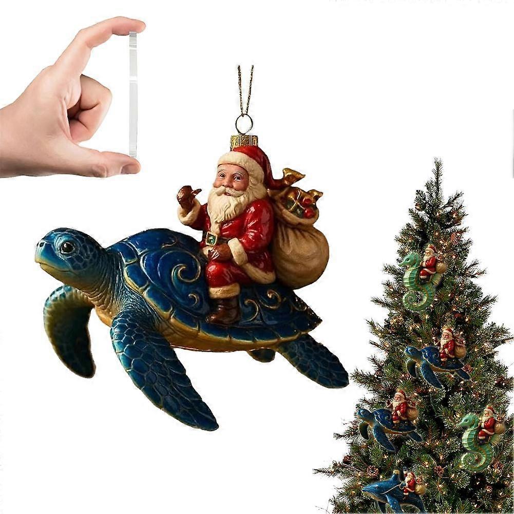 Resin Christmas tree Hanging ornaments Sea Turtle Seahorse Ornaments, Beach Santa Riding Marine Animals Coastal Xmas Tree Decor