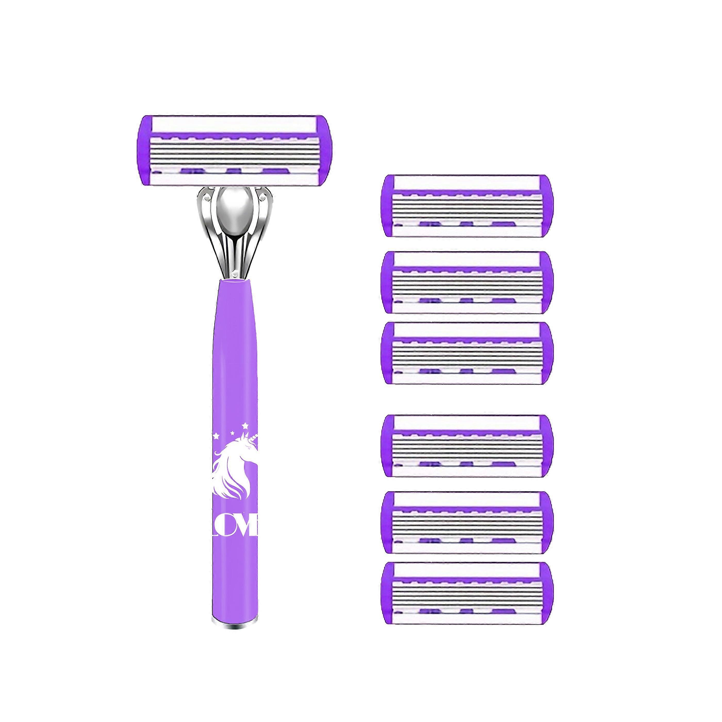 1 Handle + 12 Blades/ Women Manual Safety Razor 6-Layer Stainless Steel Hair Removal Shaving Blades Replaceable Shaver Head