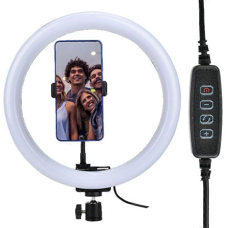 Feature: 1. Adopts high quality lamp chip, the light is even without dark angle. Support 12W high power, low power consumption, long service life. 2. USB interface design, constant current drive. Plug and play without charging. 3. 2 meters USB cable length, multi-function cable control operation, you can easily control the power cord on/off or switch to your favorite lighting mode. 4. Double cold shoe expansion interface, can be installed at the same time two devices. A stereo cooling system on the back releases heat into the air. 5. Yellow light, white light, warm white light, three color temperature switch, can achieve different filling light effect. Specification: Features: 1. Adopts high quality lamp chip, the light is even without dark angle. Support 12W high power, low power consumption, long service life. 2. USB interface design, constant current drive. Plug and play without charging. 3. 2 meters USB cable length, multi-function cable control operation, you can easily control the power cord on/off or switch to your favorite lighting mode. 4. Double cold shoe expansion interface, can be installed at the same time two devices. A stereo cooling system on the back releases heat into the air. 5. Yellow light, white light, warm white light, three color temperature switch, can achieve different filling light effect. 6. Equipped with free bending universal hose, 360° adjustable phone holder, ball head, support various angle operation, to meet the needs of different angle shooting. 7. Wide compatibility range, can used with a variety of equipment, such as laptop, PC, etc. 8. Suitable for makeup, live broadcast, manicure, tattoo, YouTube, video production, still life shooting fill light, VLOG, etc. Specification: Condition:100% Brand New Item Type: LED Ring Light Model: TPD668 Material: Plastic Color: As Pictures Shown Lamp Body Size: 12 Inch Lamp Chip Quantity: 160 Bringhtness Adjustment: 10%-100% Color Temperature: 3200K-5600K Input Power: USB 5V2A-3A Power: 12W Size: Approx. 35x5x34.5cm/13.78x1.97x13.58inch(Package) Package List: 1 x LED Lamp Body(USB with Wire Control) 1 x Universal Hose 1 x Lamp Base Ball Head 1 x Phone Clip