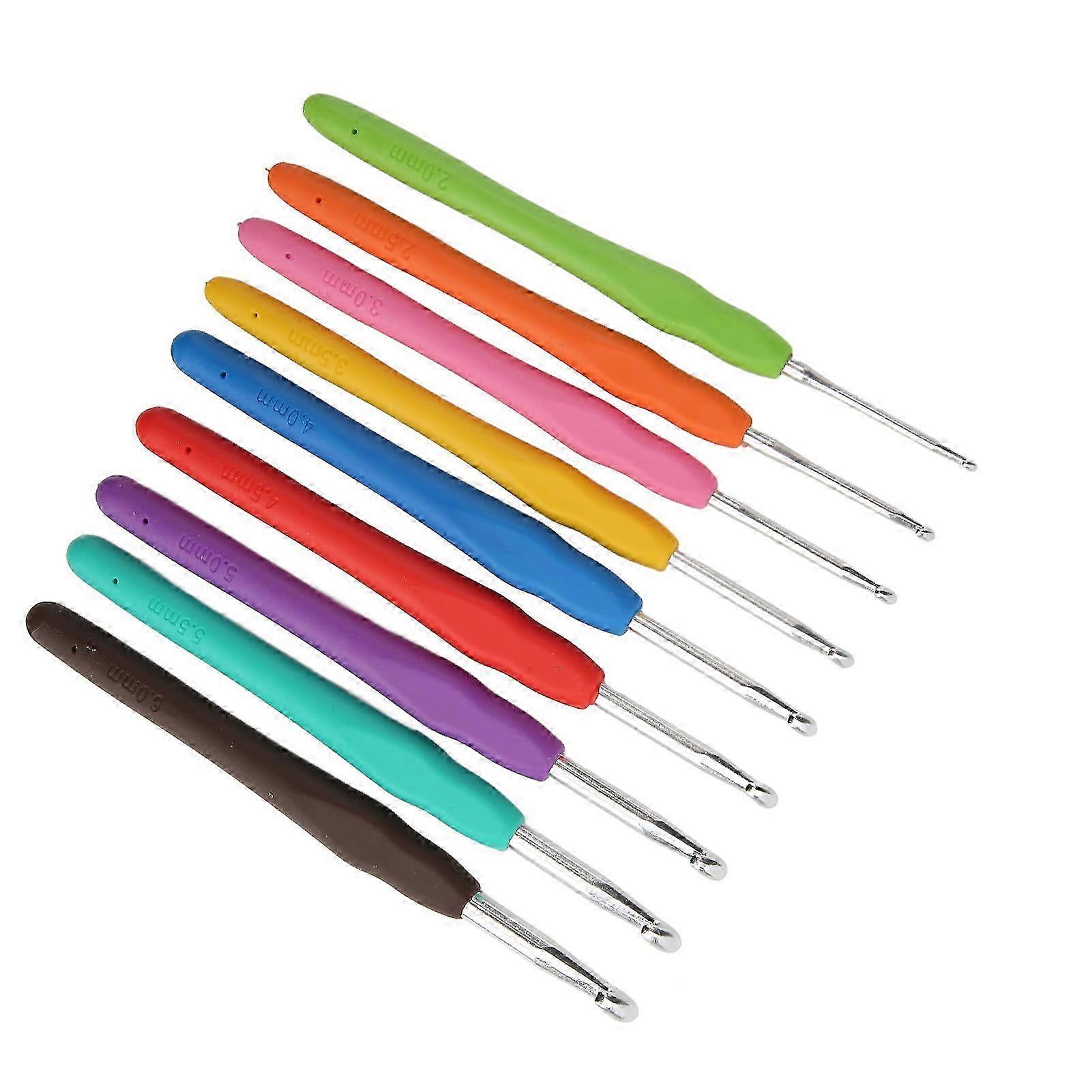 9Pcs Aluminum Crochet Hooks Set 2.0-6.0mm Soft Handle 5.4in-stj