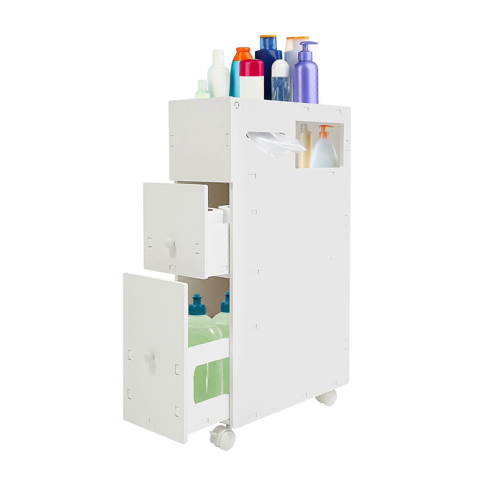 Bathroom Storage Cabinet with Drawers & Wheels, Narrow Bathroom Shelf Space-saving