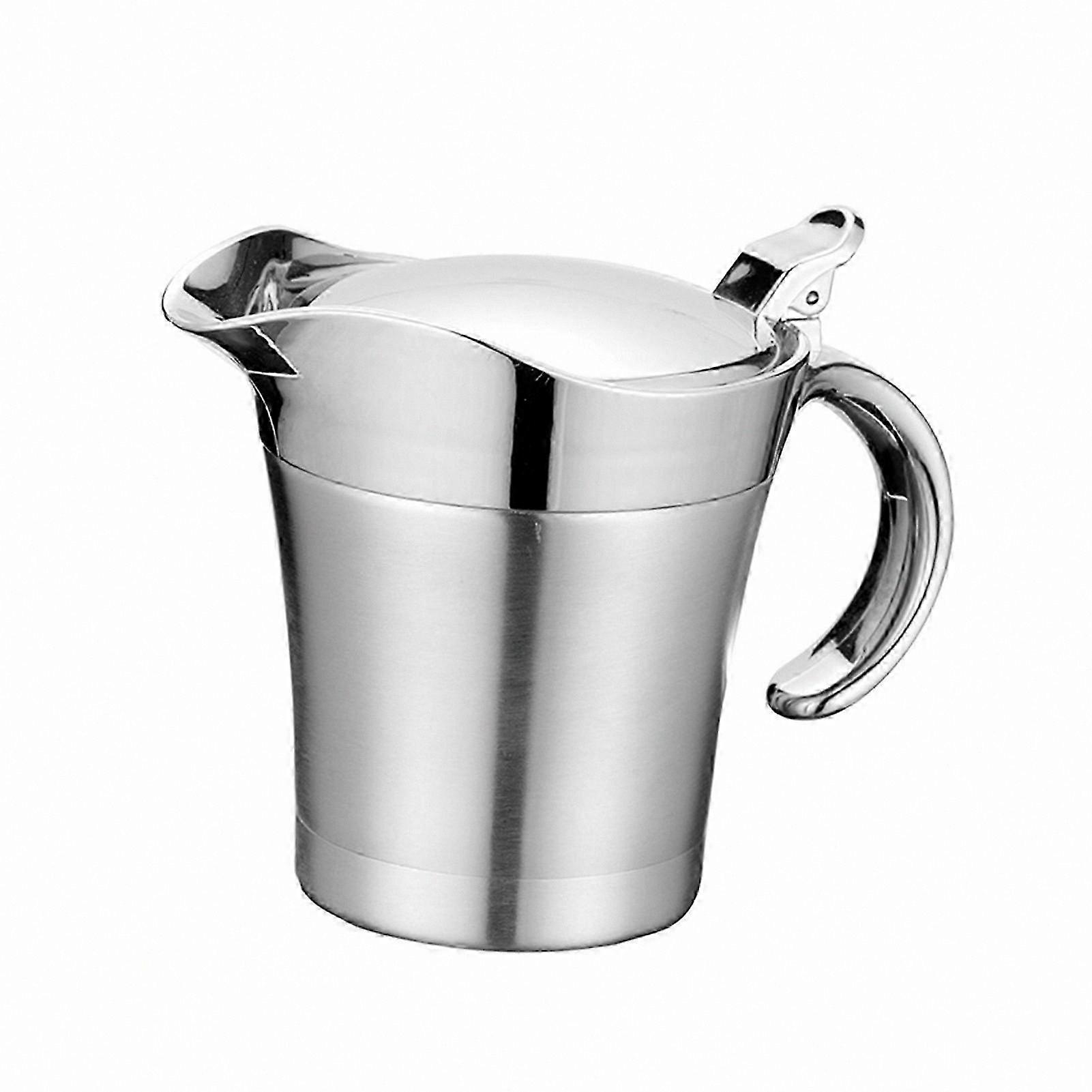 Insulated Stainless Steel Gravy Dispenser with Cover for Sauce Serving and Keeping Warm