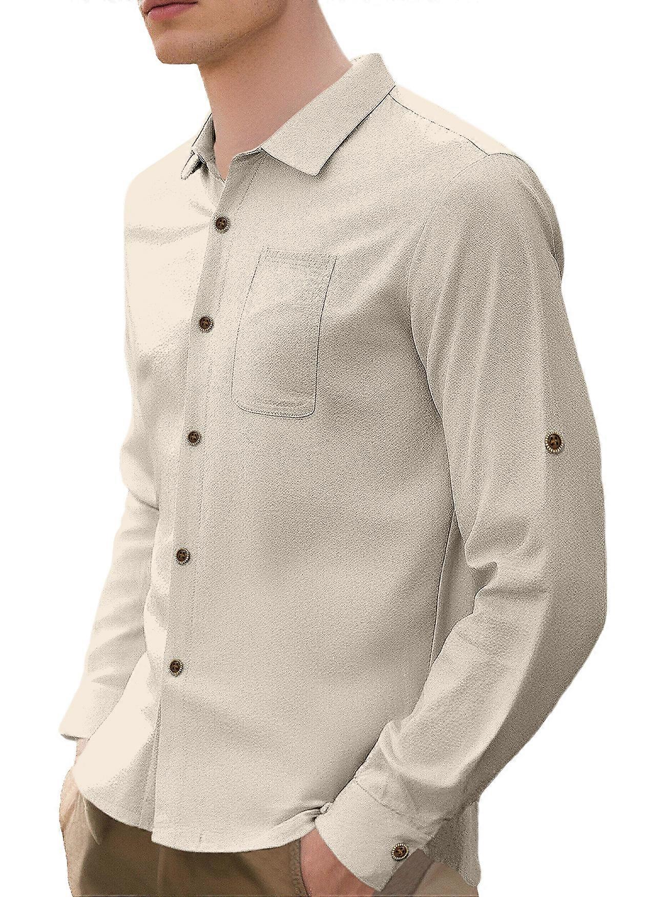 Men's Linen Long Sleeve Shirt, Autumn Casual Loose American Style Commuter Jacket