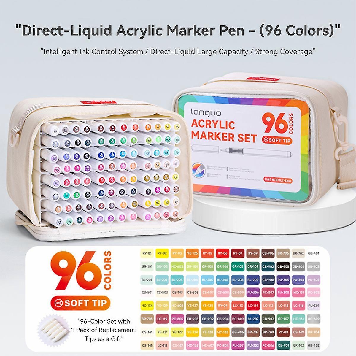 LANGUO 96-240 Colors Direct Liquid Colors Acrylic Paint Pens Brush Marker Pen for Painting Stone DIY Art Supplies Stationery