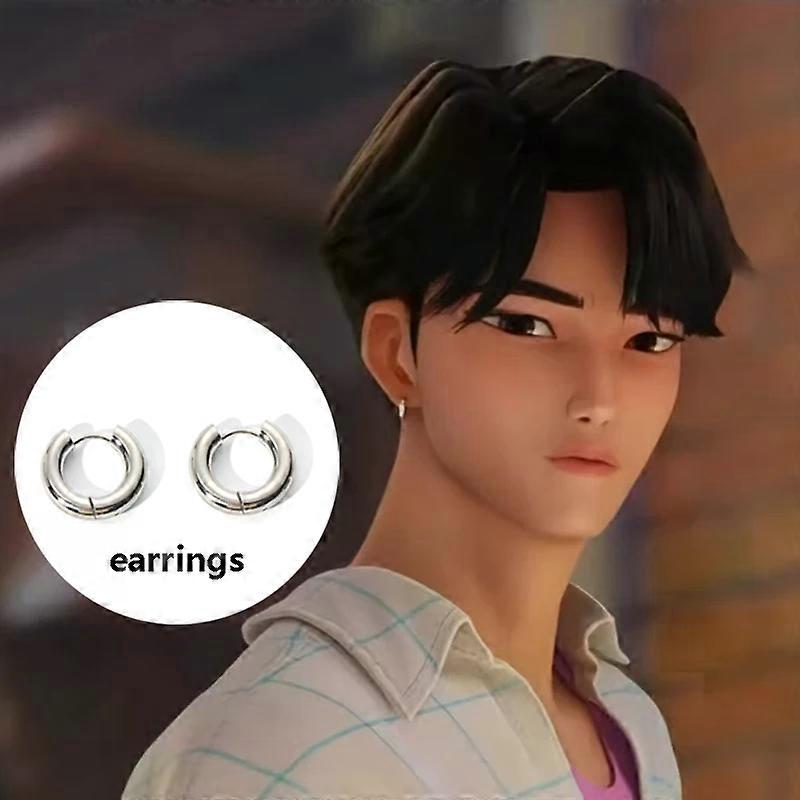 For Devil Hunter Saja Boys Jinu Cosplay Wig Glasses Earrings Necklaces Anime Roleplay Props Accessory Halloween Decor