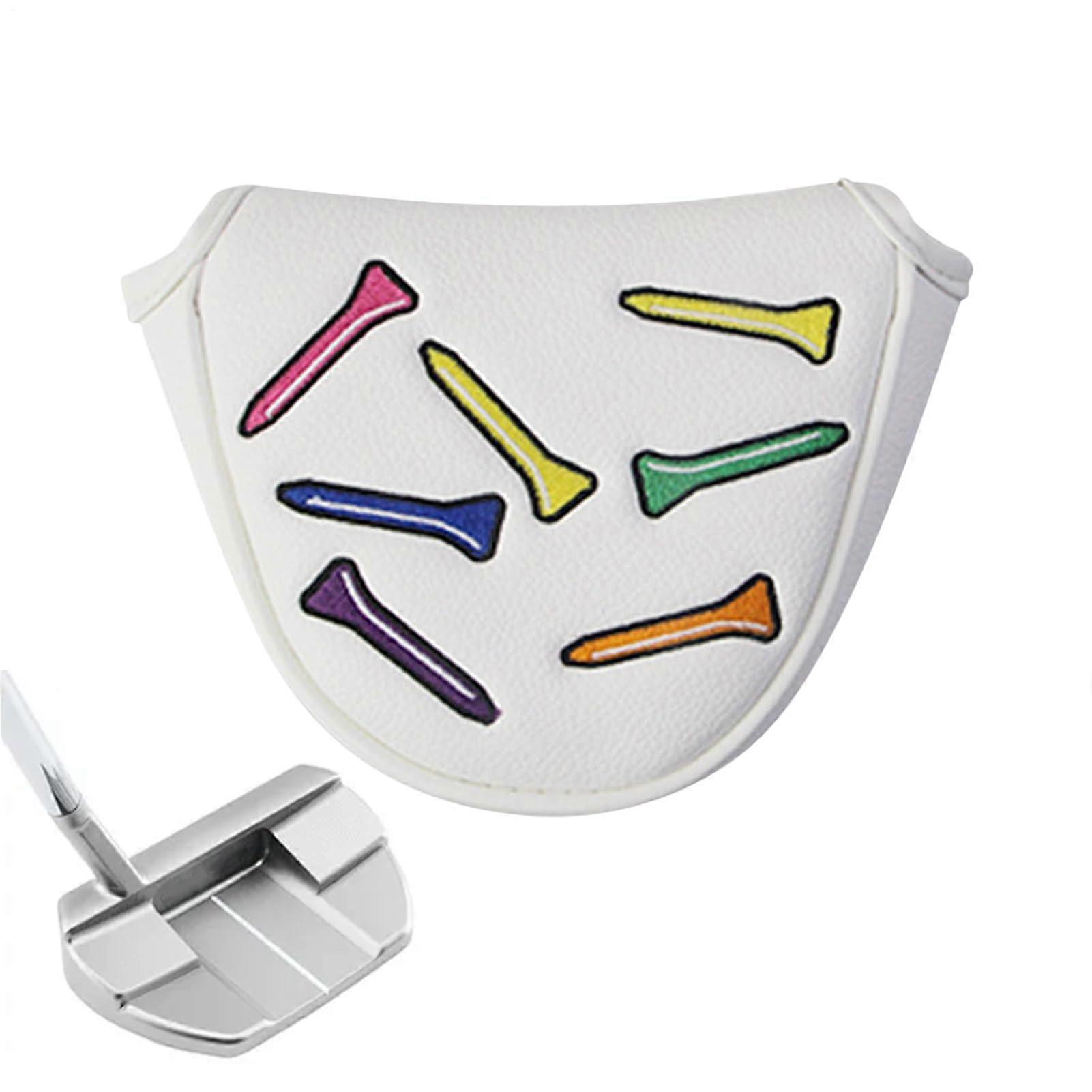 Golf Putter Cover Waterproof Magnetic Lock Embroidered Mallet Headcover Plush Lining White