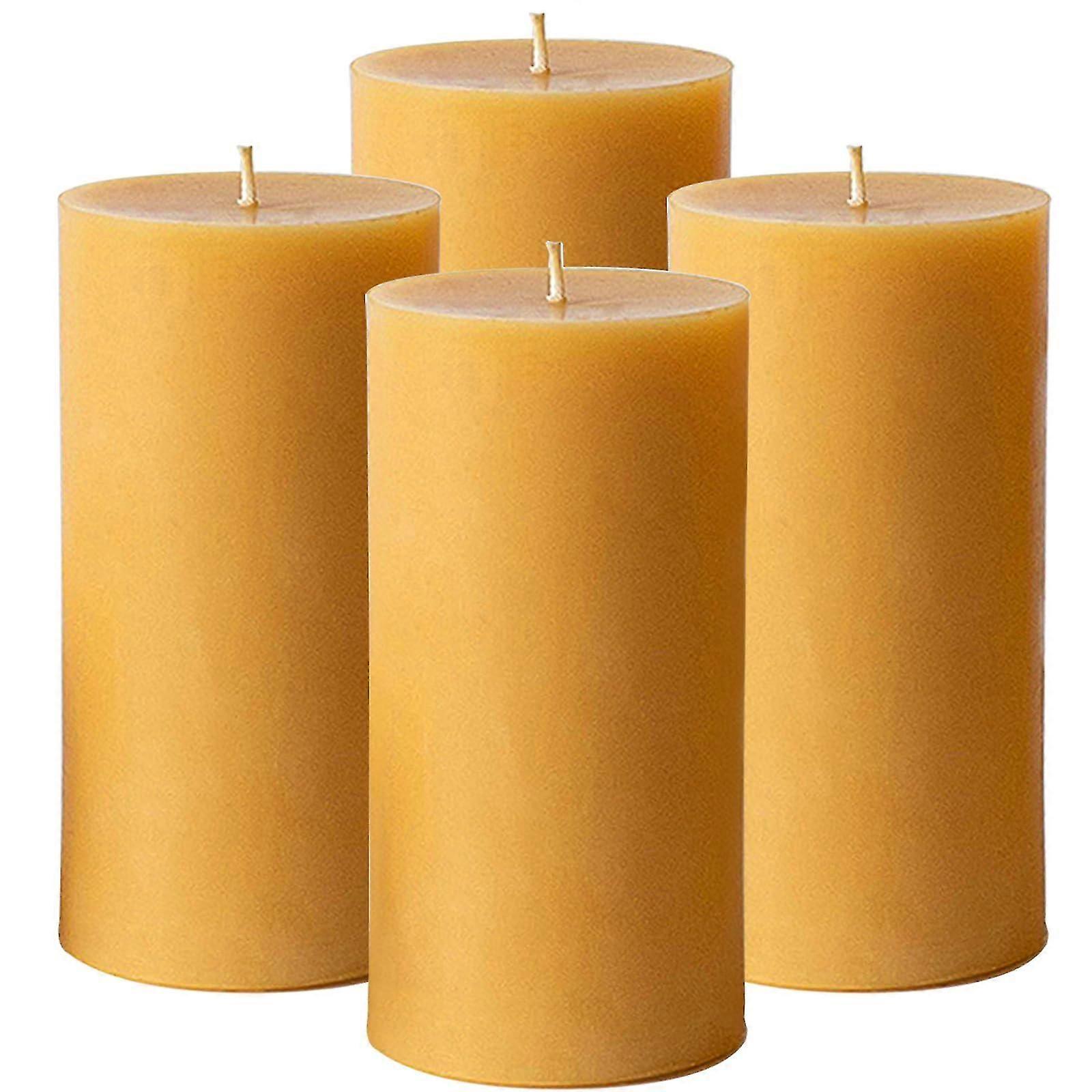 4 Pack Natural Beeswax Pillar Candles Bulk 2x4 Pure Honey Scent Long Burning Smokeless Dripless SHwy