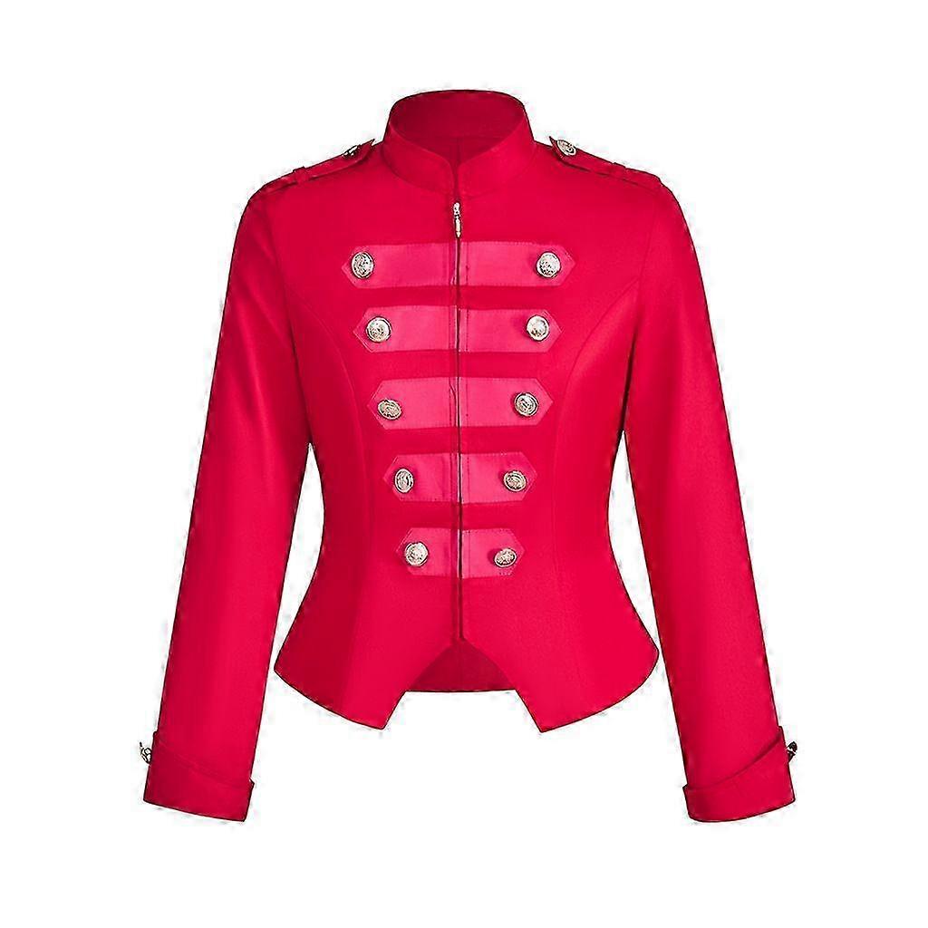 Gothic Punk Military Style Jacket Womens Stand Collar Short Coat with Decorative Buttons-kieo