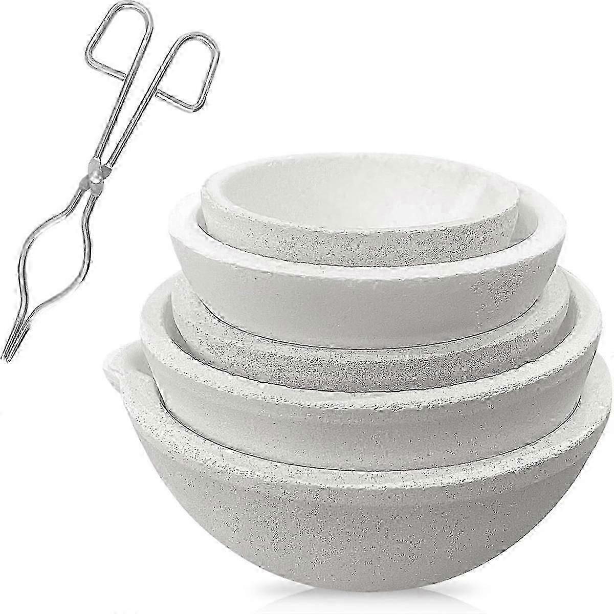 6 Pack Ceramic Crucible Bowl with 7.87 Inch Crucible Tong,for Casting Refining Torch Melt Gold Silv SHwy
