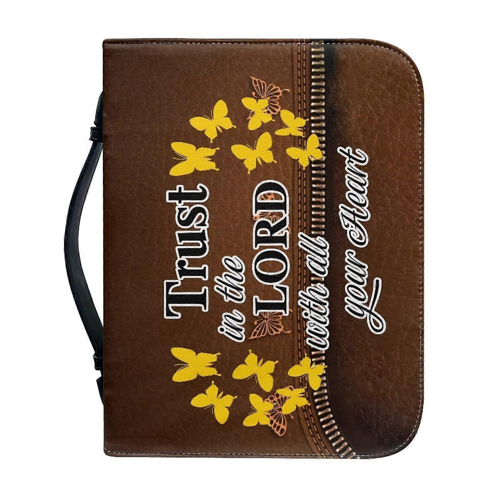 Extra Large Waterproof PU Leather Bible Cover with Handle and Pockets Yellow Butterfly Design