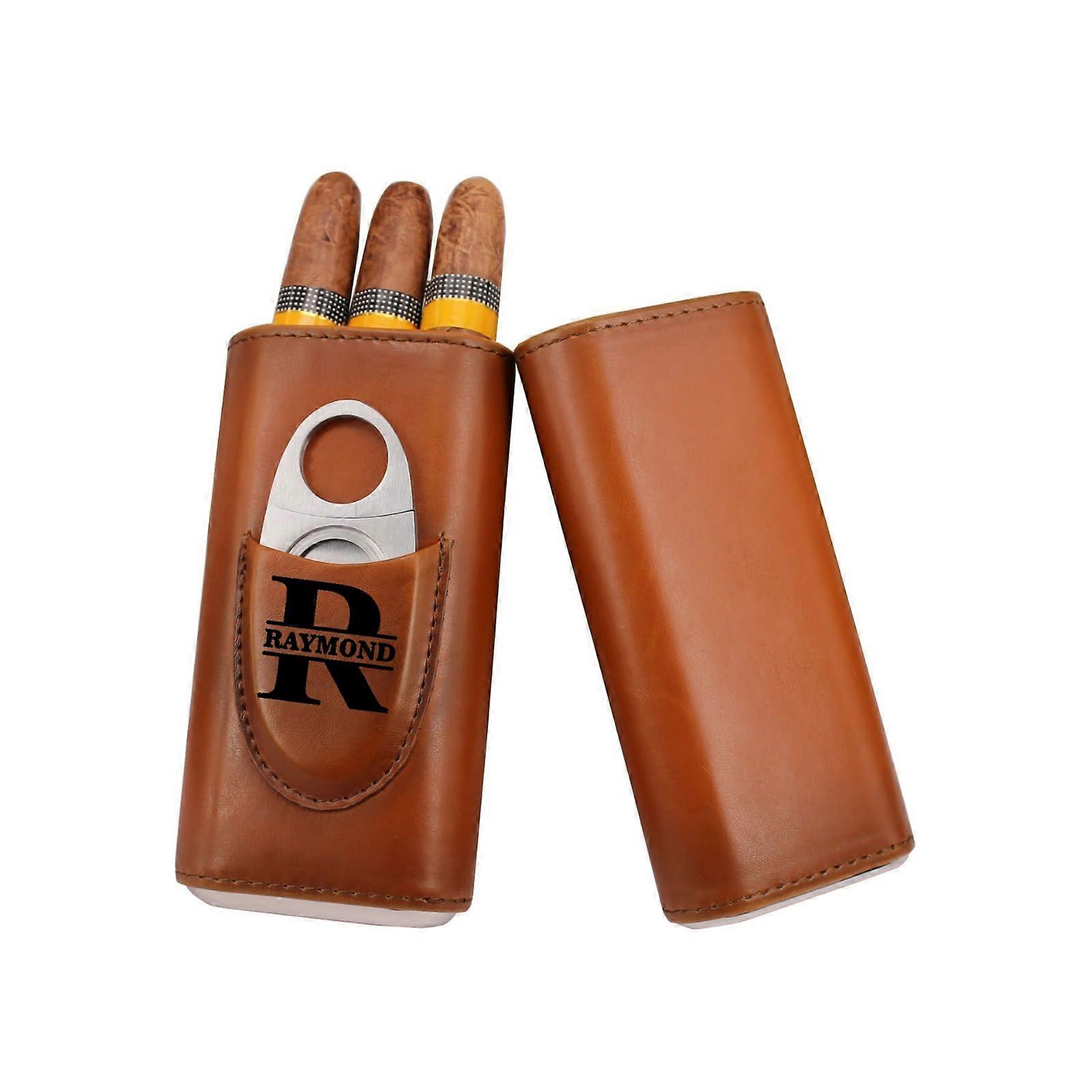 Cigar Case with Custom Engraving Leather Travel Humidor for Men Includes Cutter Brown