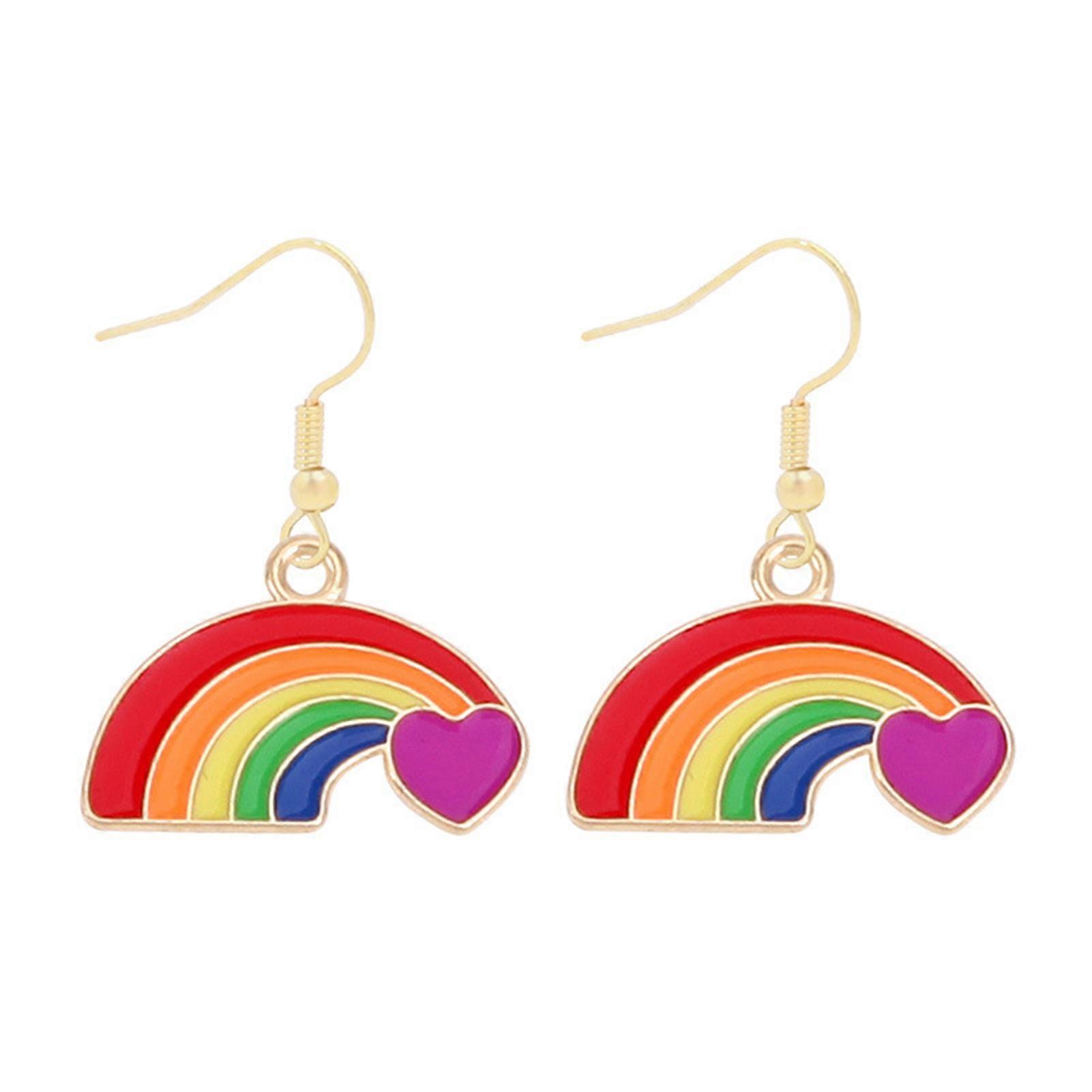1 Pair Women Earrings Rainbow Color Colorful Heart Shape Stainless Anti-allergy
