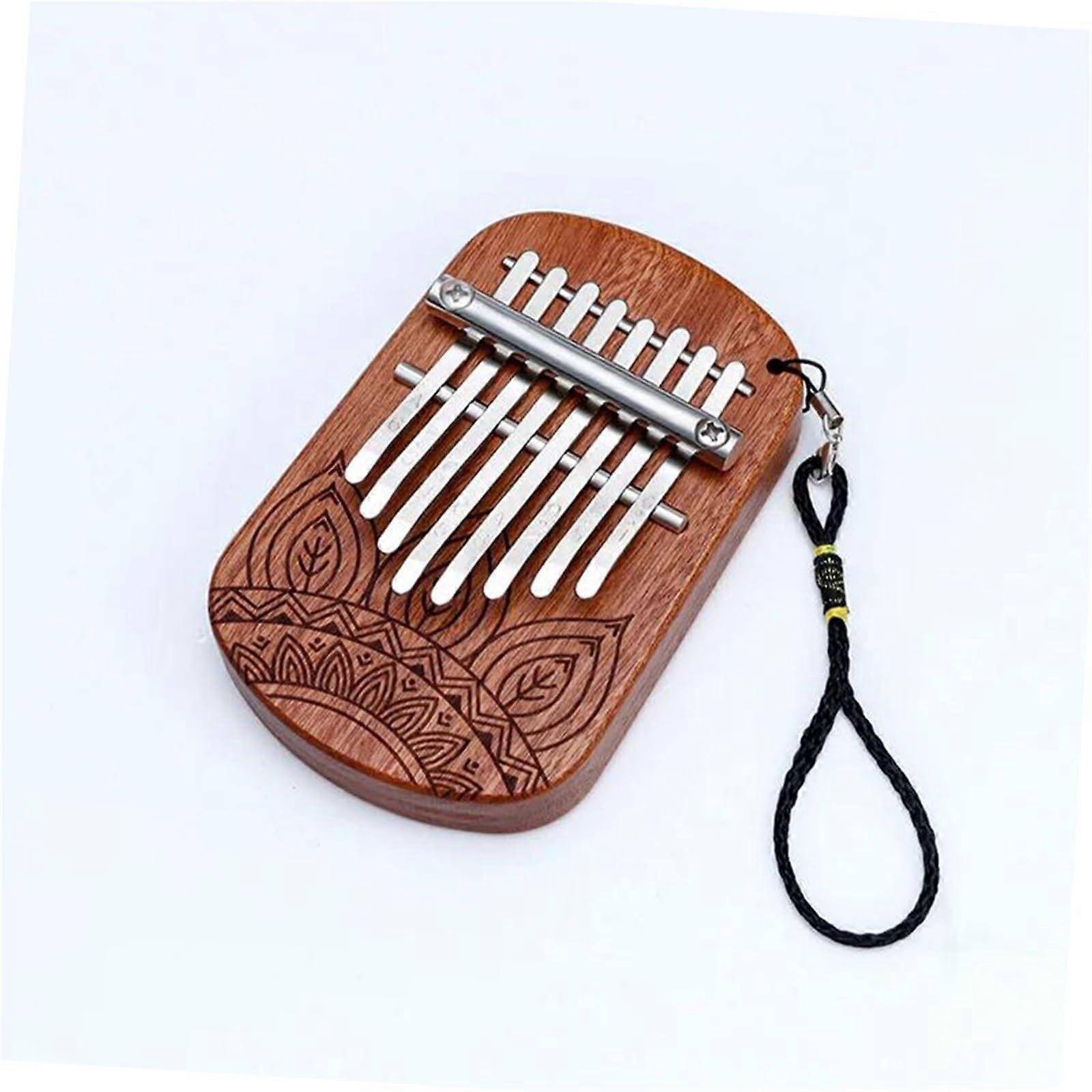 Kalimba Thumb Piano 8 Key Sapele Wood Mini with Lanyard Smooth Ore Metal Keys for Rich Tone