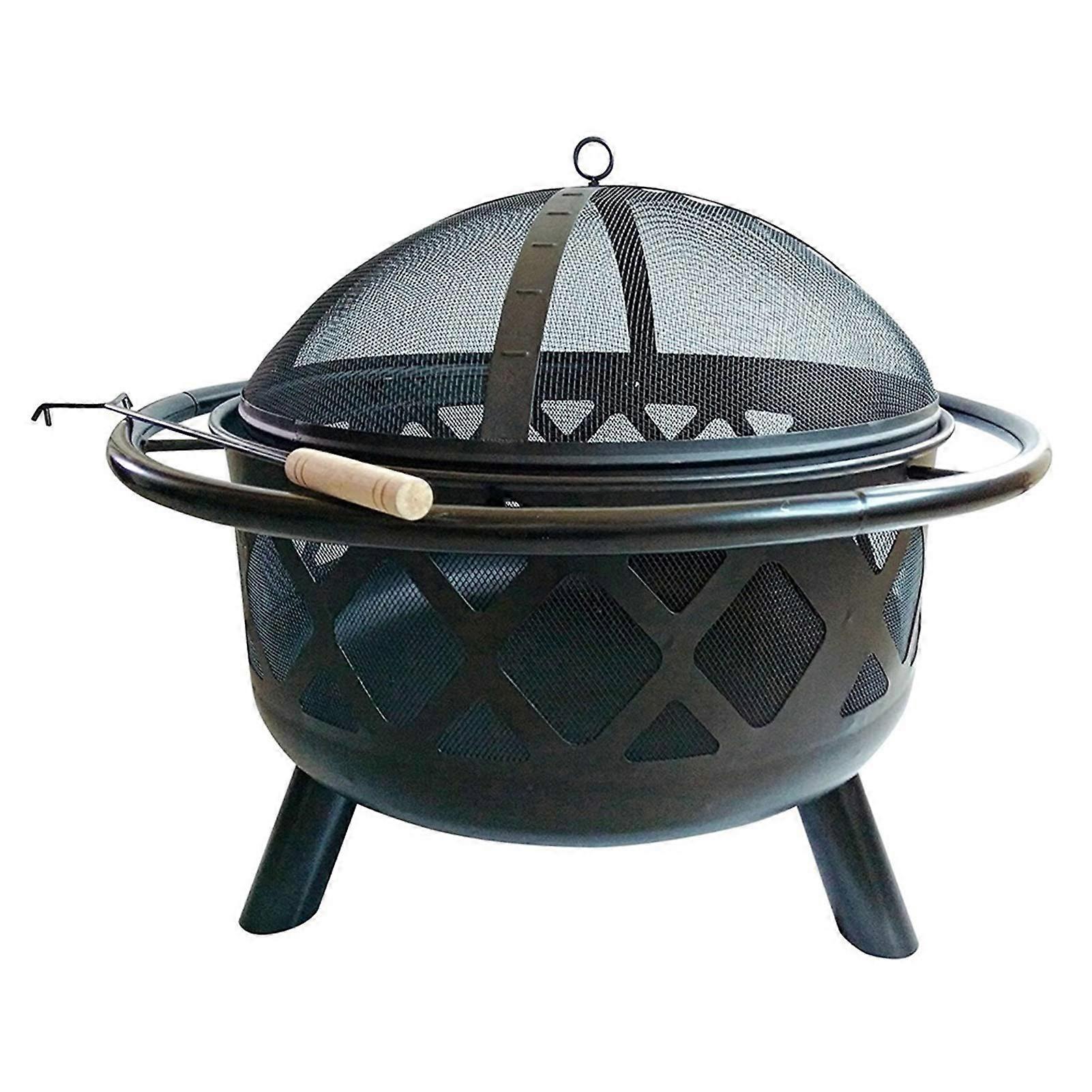 Large Outdoor Fire Pit with BBQ Grill, Wrought Iron Wood Burning Fire Bowl for Backyard Patio