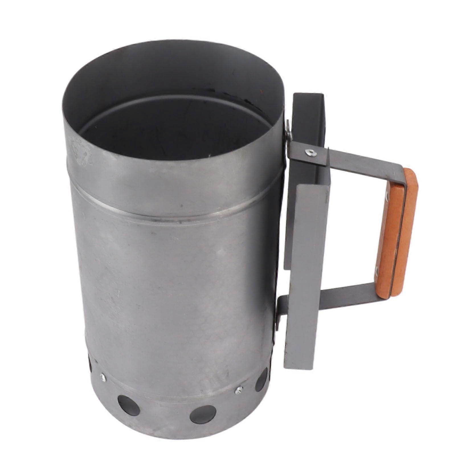 Charcoal Chimney Starter with Wooden Handle for Quick Ignition BBQ Camping and Outdoor Cooking