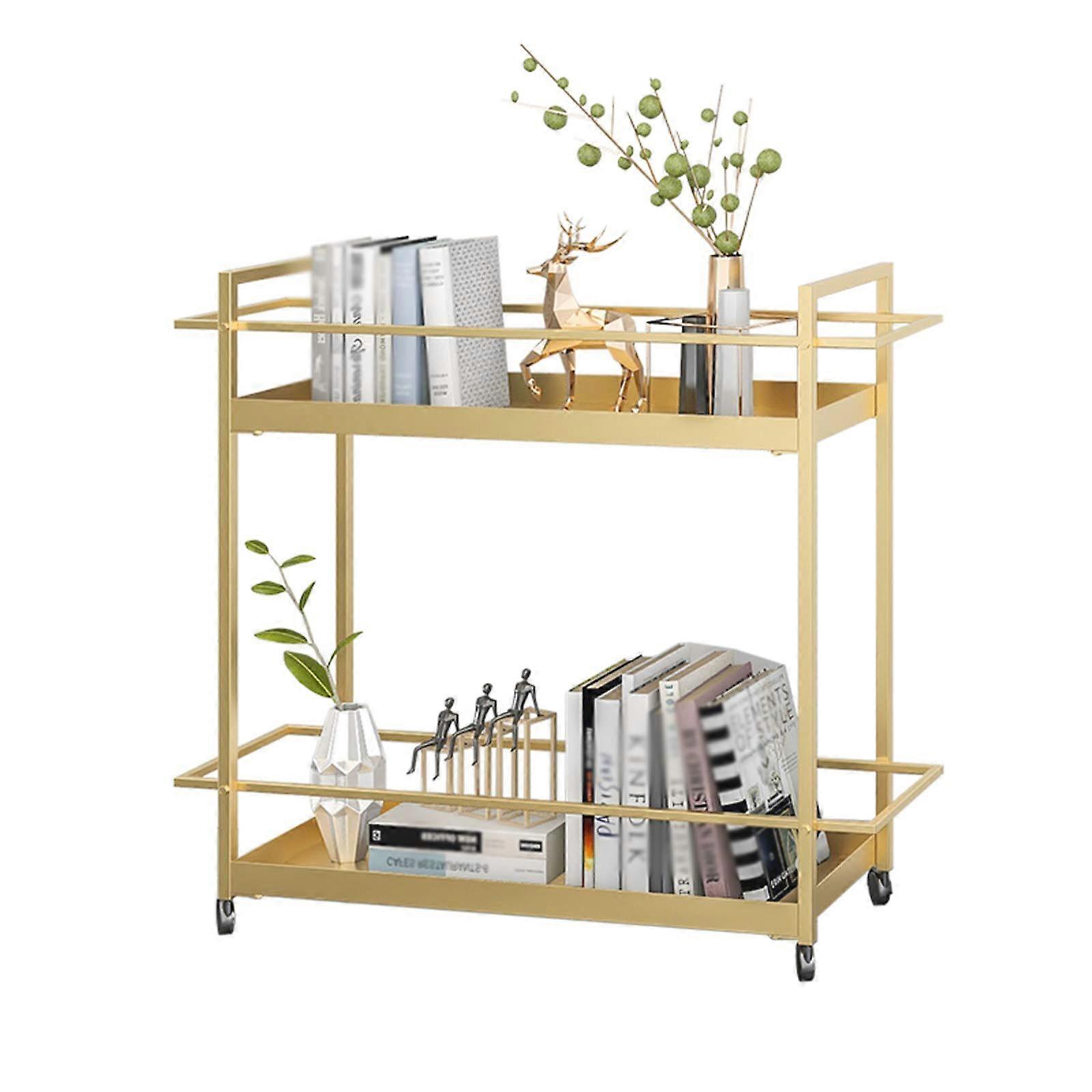 Kitchen Storage Cart Gold 2 Tier Metal Trolley with Wheels Smooth Rolling for Kitchen Bathroom Office