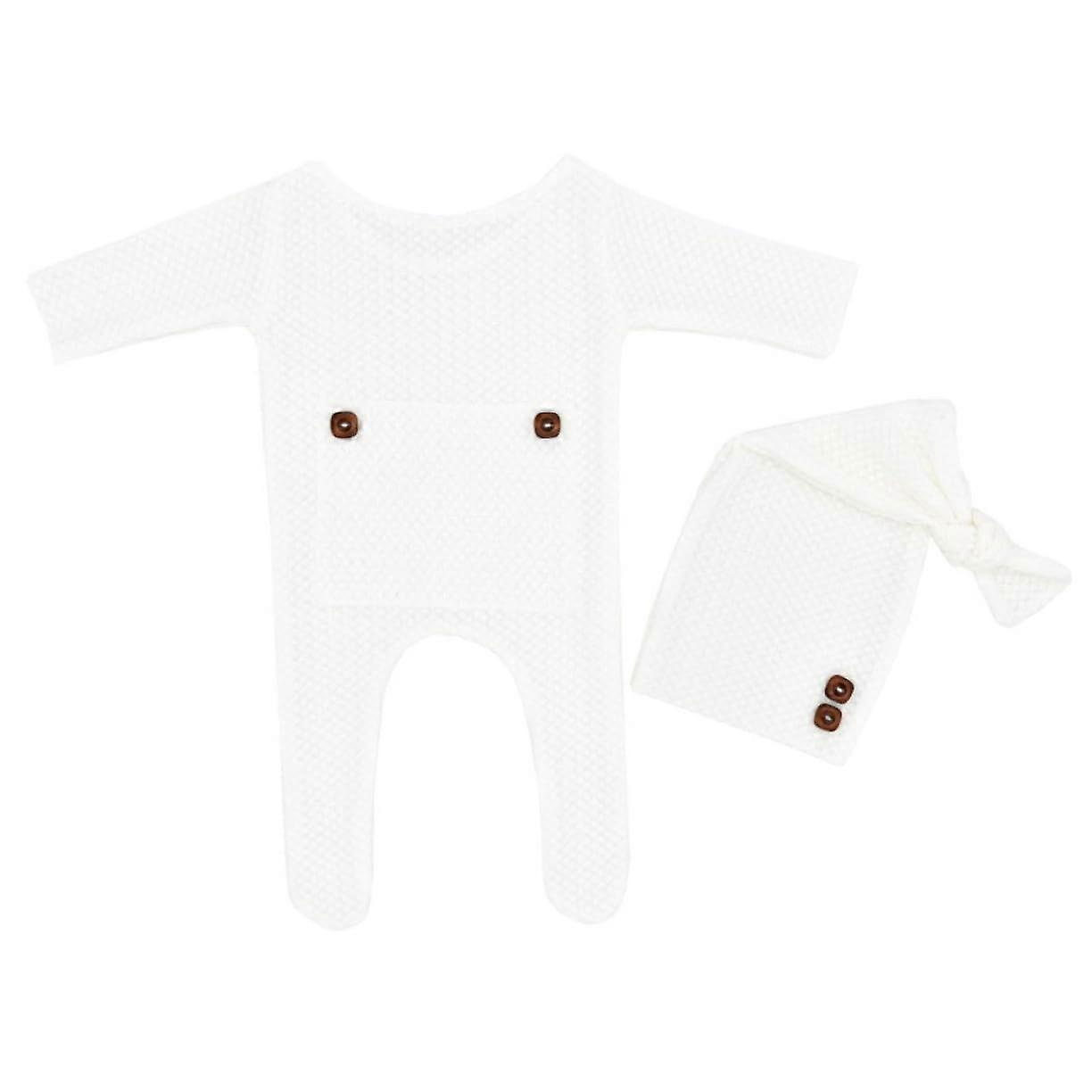Newborn Photography Props Knit Costume with Hat for Baby Girl Photo Shoot Soft Handmade Outfit White