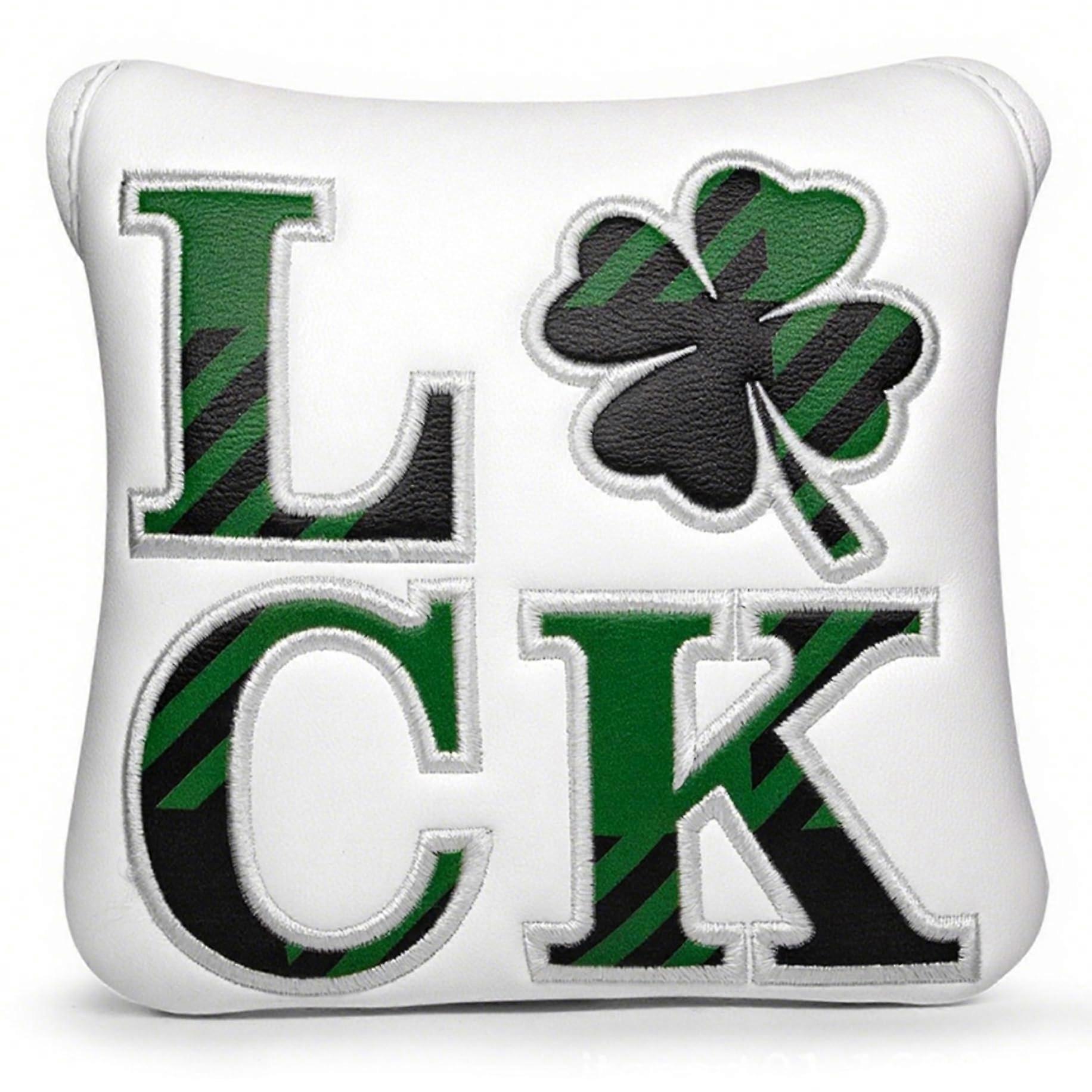 Golf Putter Head Cover Waterproof Square Mallet with Magnetic Lock and Lucky Clover Design White
