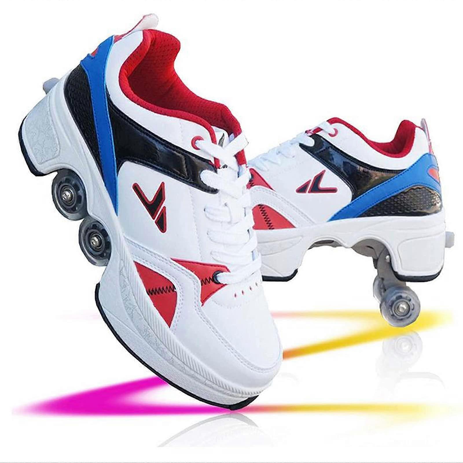 Adult 2in1 Roller Shoes with Hidden Wheels, Adjustable Inline Quad Skates Sneakers, Size 31