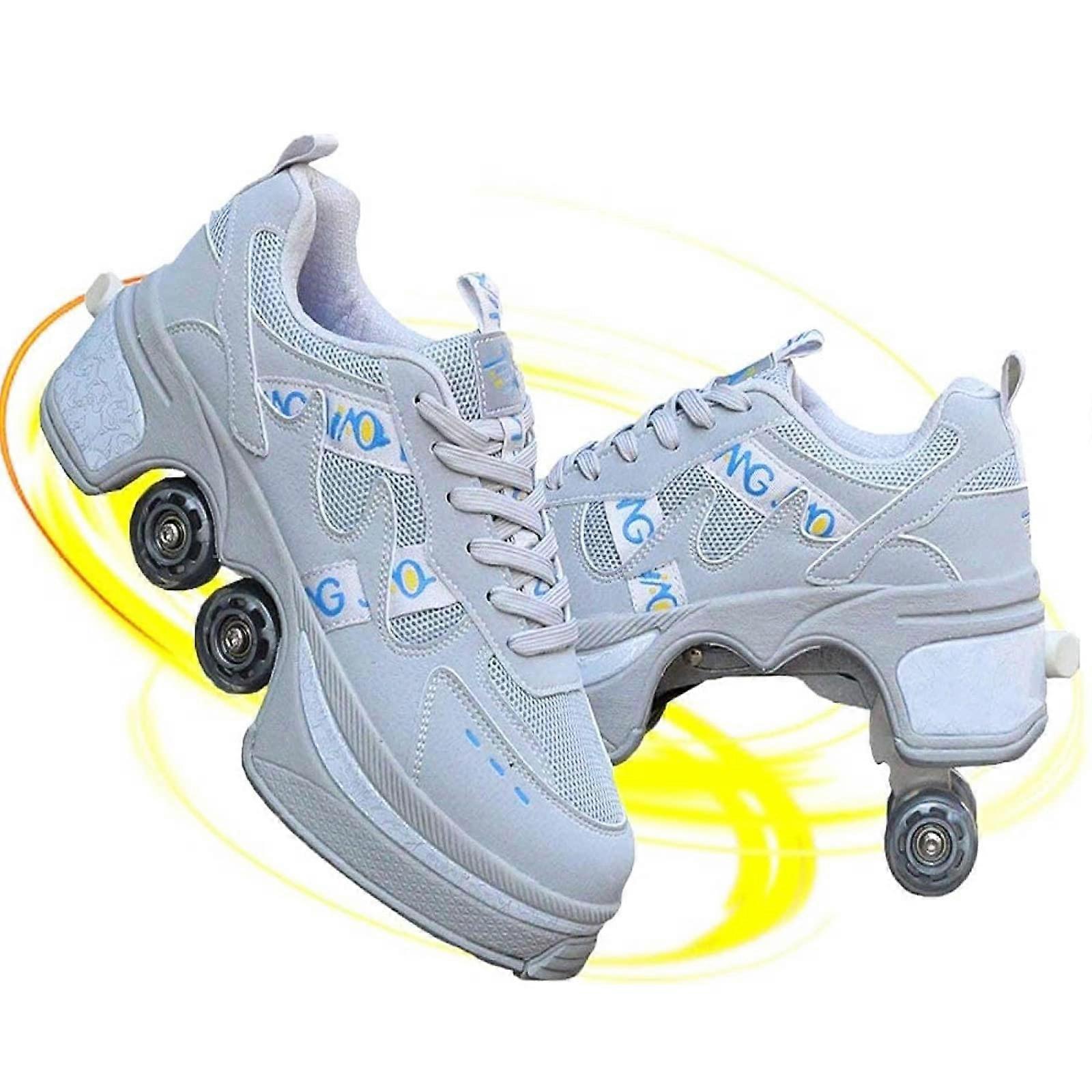Adjustable 2in1 Roller Skates Shoes for Kids with Retractable Wheels and Breathable Fabric, Size 37
