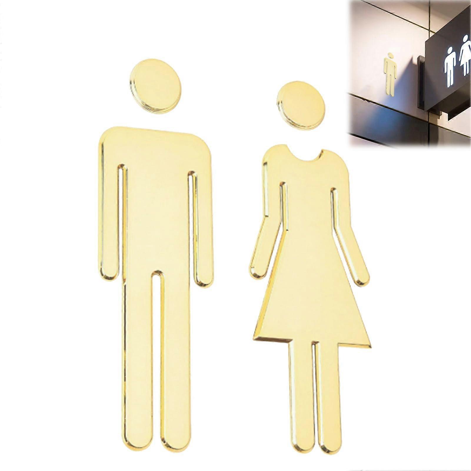 Gold Toilet Door Sign for Men and Women with Easy Peel Adhesive, Durable Gold Finish for Home Office Restaurant