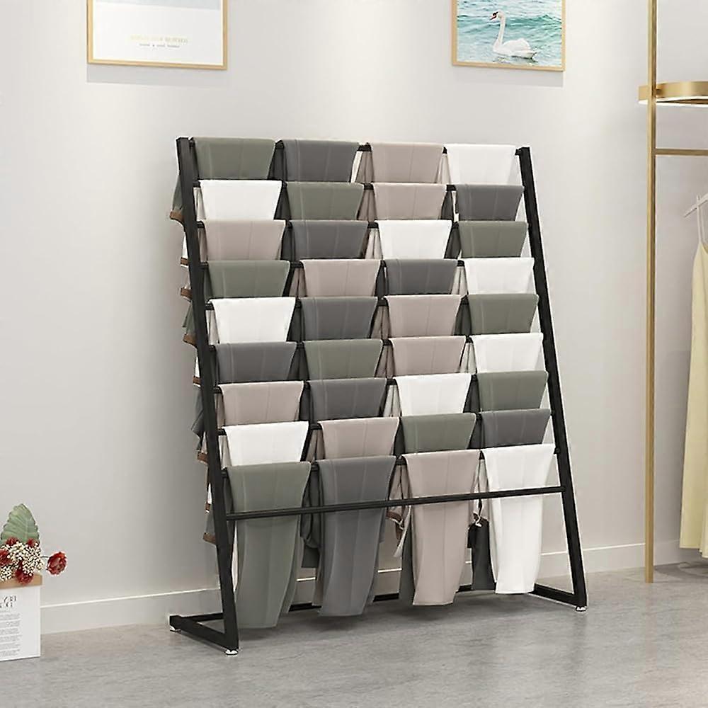 Multifunctional display stand The multilayer hanging rod design enables storing and displaying scarves, belts, sheets, blankets, ties, shawls, gift wrap paper, silk scarves, pants and other accessories. Keeps items organized and reduces folding. Large capacity Floortoceiling vertical stand with 10 separate tiers. Items are neatly arranged and exposed, helping customers understand your products. Durable metal construction Built from quality metal with thickened steel pipes for strength and durability. The surface is scratch and wearresistant to protect delicate fabrics. Bottom mats prevent floor damage and provide stable footing. Easy to assemble Available in a variety of sizes. Quick and straightforward assembly. Use scenarios Ideal for boutique storefronts or showrooms to display a full range of accessories in a compact footprint. Suitable for trade shows or popup events where vertical space and visibility matter. for home closets or dressing rooms to organize scarves, belts, and other accessories.