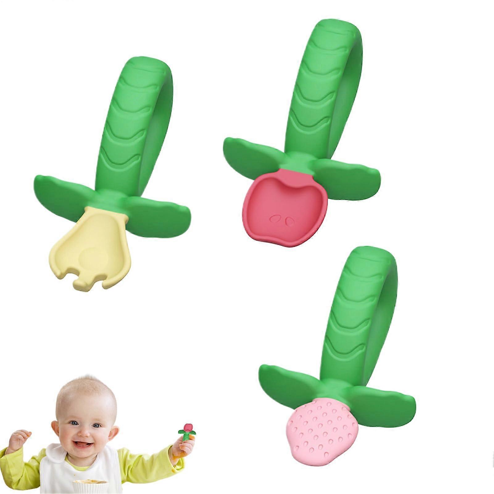 Baby Silicone Spoon and Fork Set with AntiChoke Protection, Soft Tips, Strawberry Design, Dishwasher Safe for Toddler Self Feeding